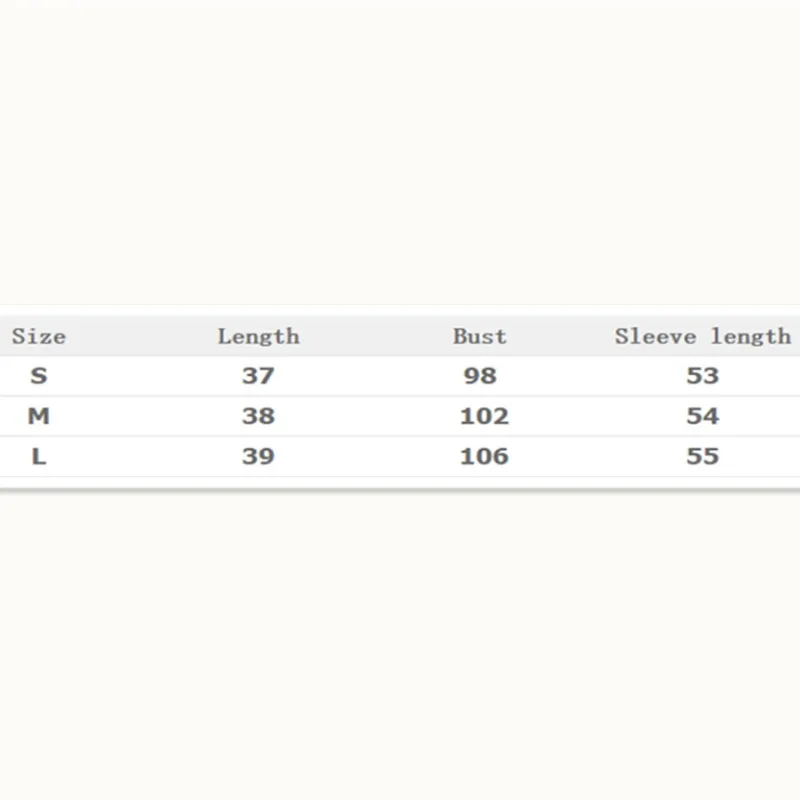 Размеры Длина Бюст Длина рукава S 37 98 53 М 38 102 54 L 39 106 55