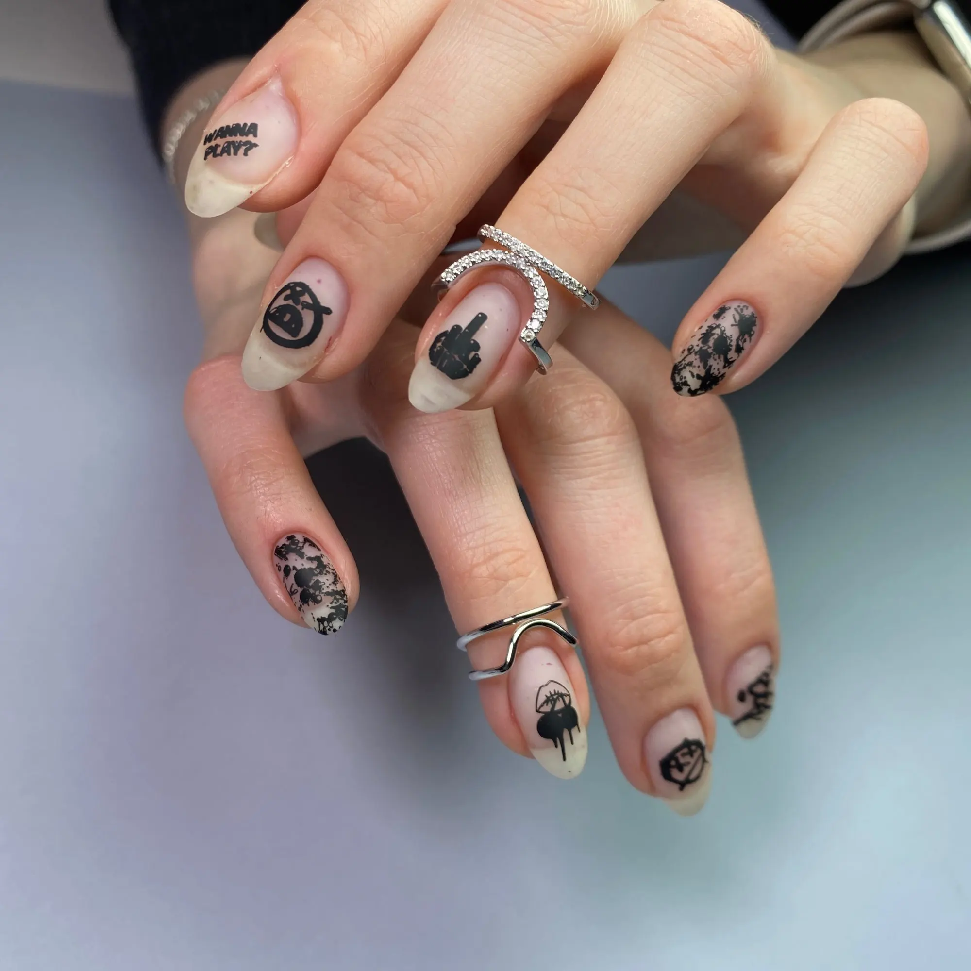 Кольца для ногтей женские, в готическом стиле, с металлической линией