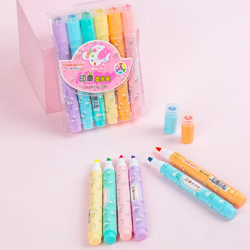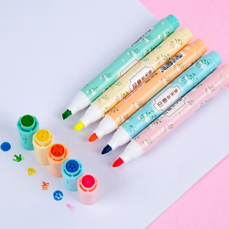 6 шт. портативный мини-маркер со штампом, Цветной маркер, ручная ручка для рукоделия, канцелярские принадлежности для студентов, детский подарок, оптовая продажа