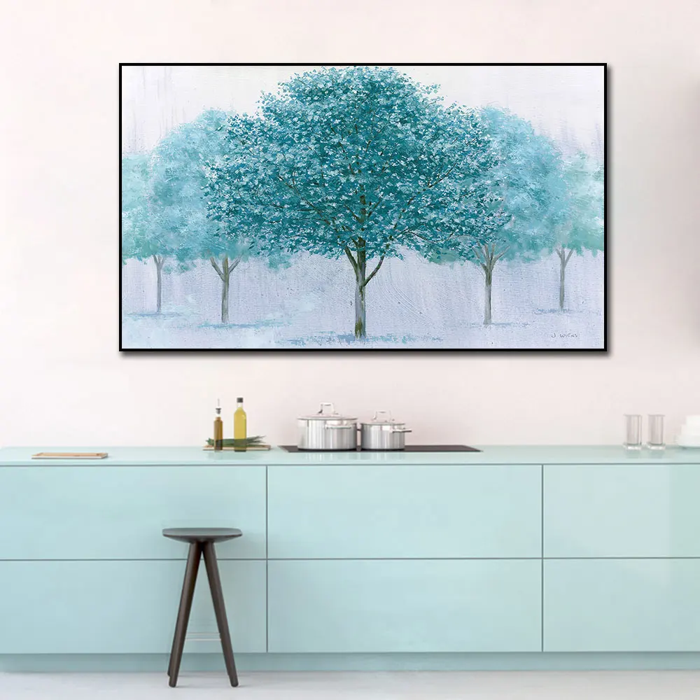 Картина с изображением дерева на холсте, настенная живопись для украшения гостиной, пейзаж, домашний декор, Современная абстракция Синяя