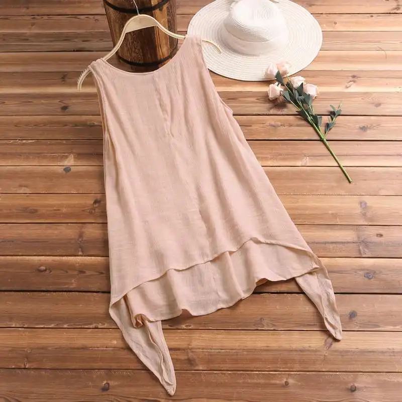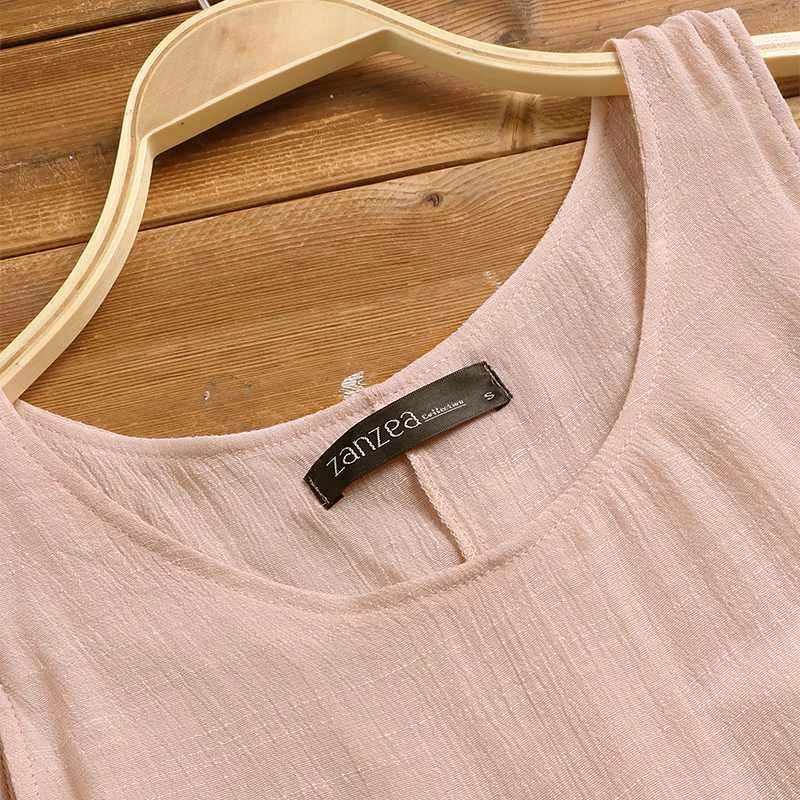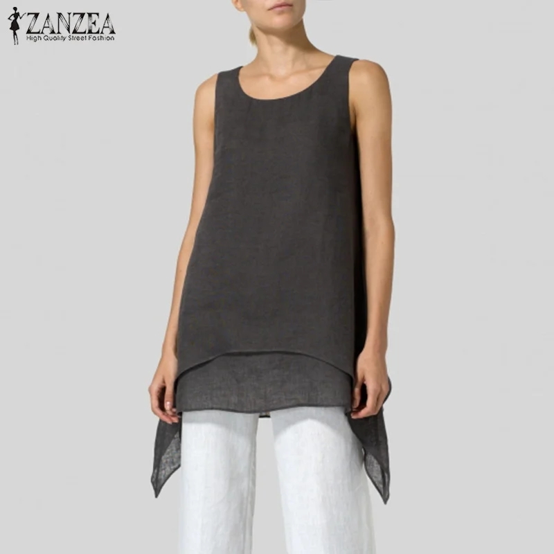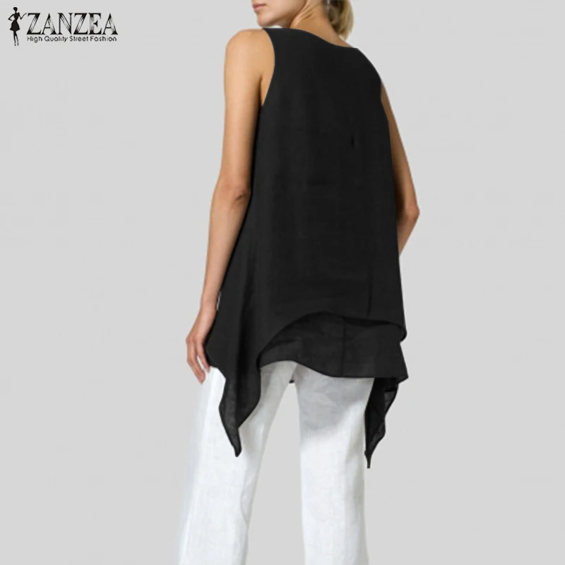 Женская блузка ZANZEA Повседневный ассиметричный топ на бретелях, элегантная Однотонная рубашка без рукавов, Офисная туника, на лето