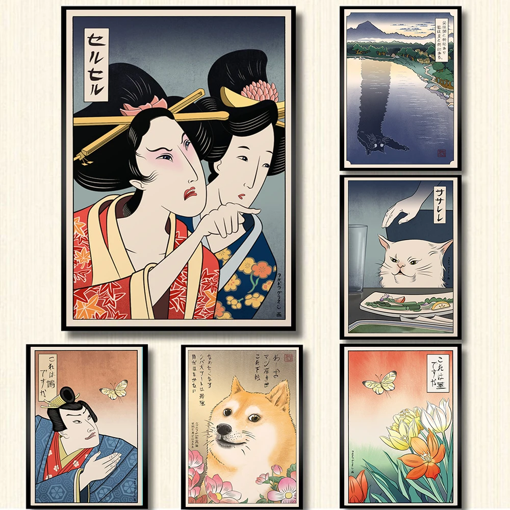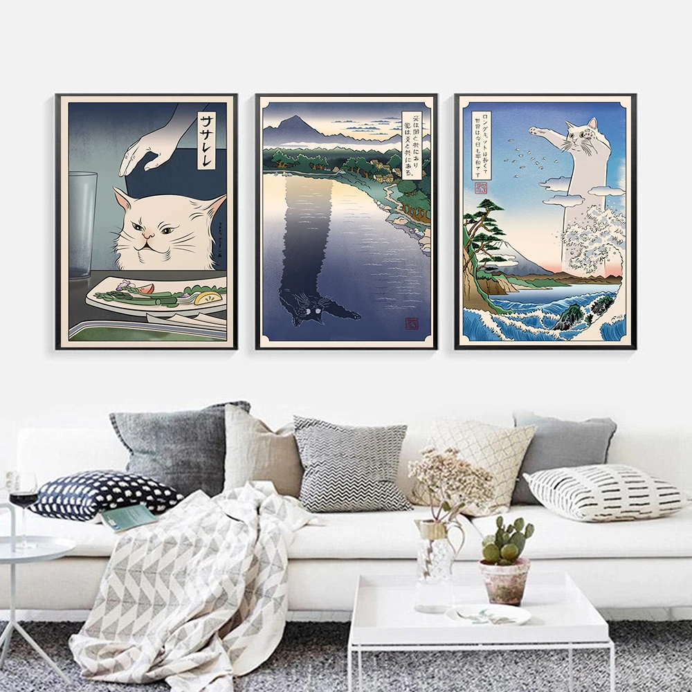 Настенное художественное изображение с изображением принты для домашнего декора, японского самурайского кота, модульный постер в скандинавском стиле, современный прикроватный фон