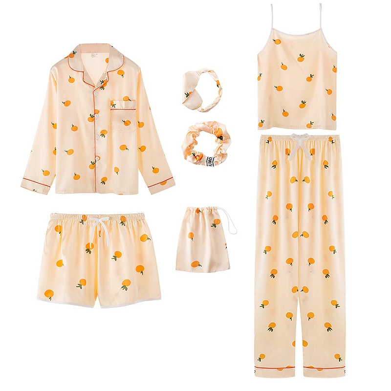Пижама женская, шелковая, атласная, 7 предметов, весна-лето, набор ...