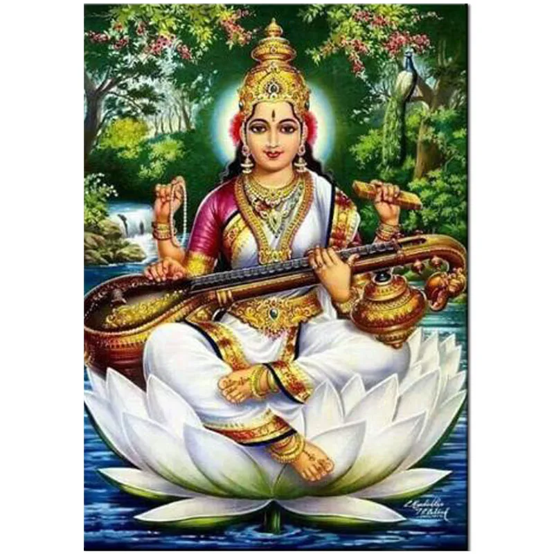 Богиня Сарасвати Pinterest 5D Diy алмазная живопись Индии и лотоса Вышивка крестом мозаика камни в форме ромба RoundZP-4222