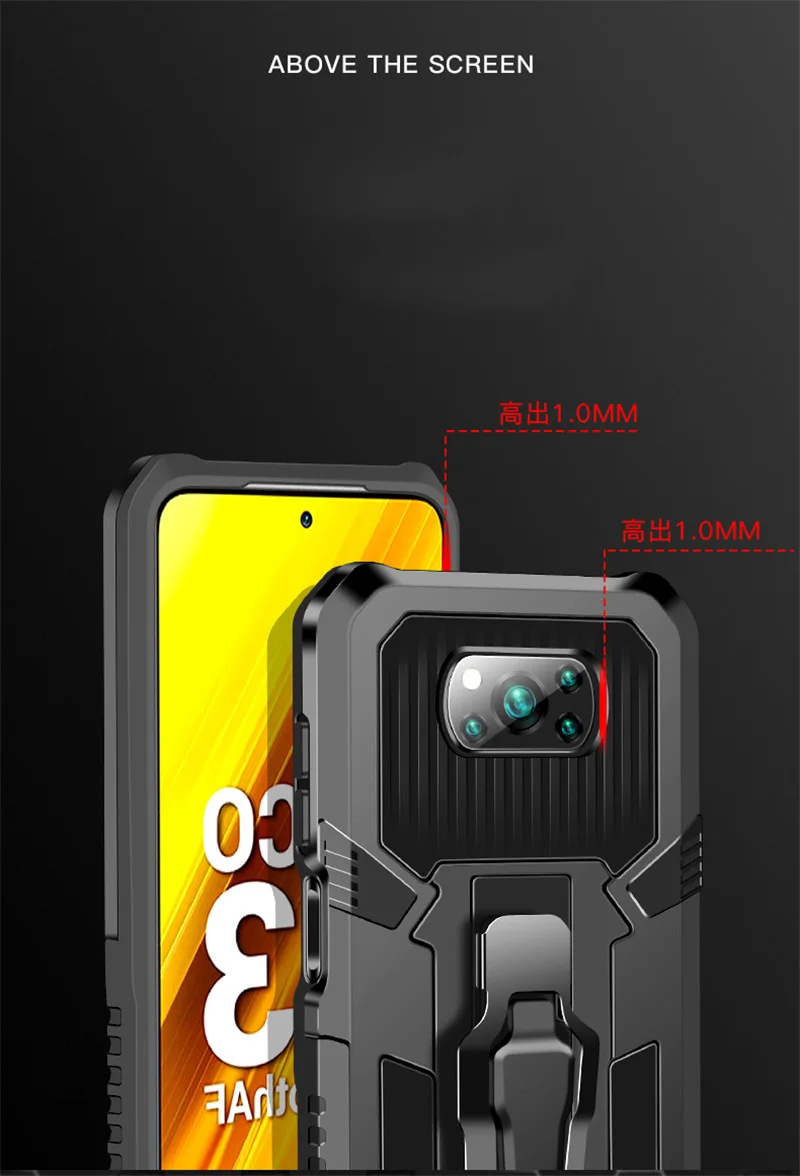 ДляXiaomi POCO X3 NFC Redmi Note 9 9S 7 8 5 10 Pro 9A 9CДляXiaomi POCO X3Противоударный Прочный гибридный защитный чехол-подставка