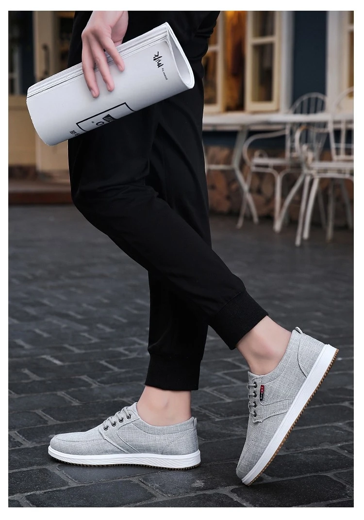 Мужские парусиновые туфли на шнуровке, Повседневные Дышащие туфли на плоской подошве, весна 2020