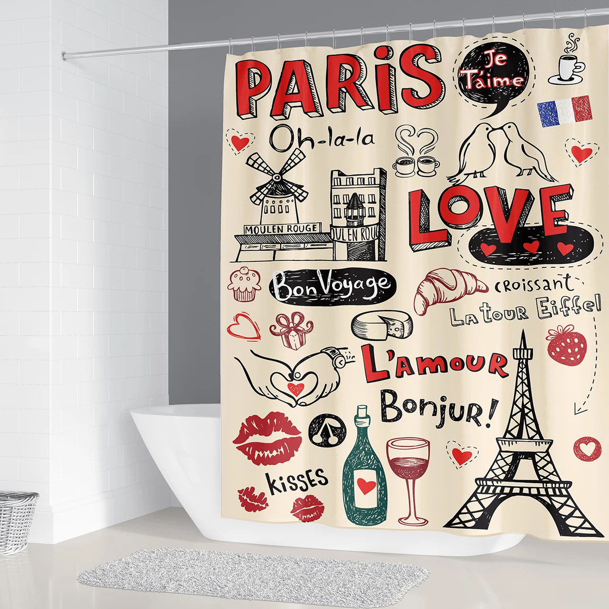 Занавеска для душа в стиле Парижская башня, 12 крючков, 4 размера