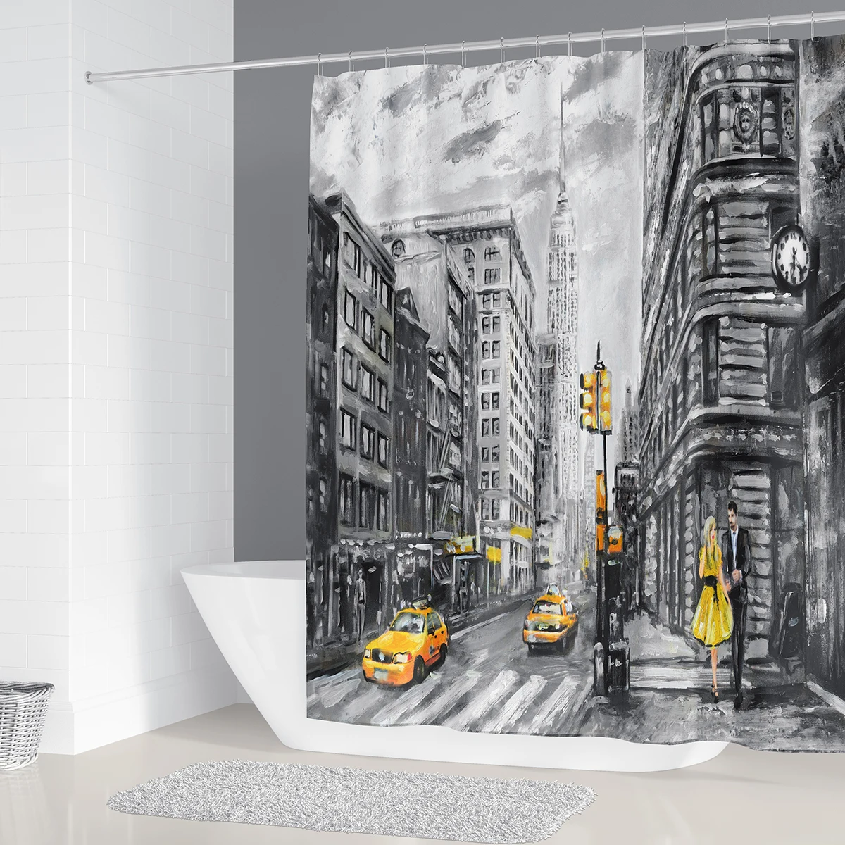 Коврик для ванной и занавеска для душа в современном стиле, набор, ...
