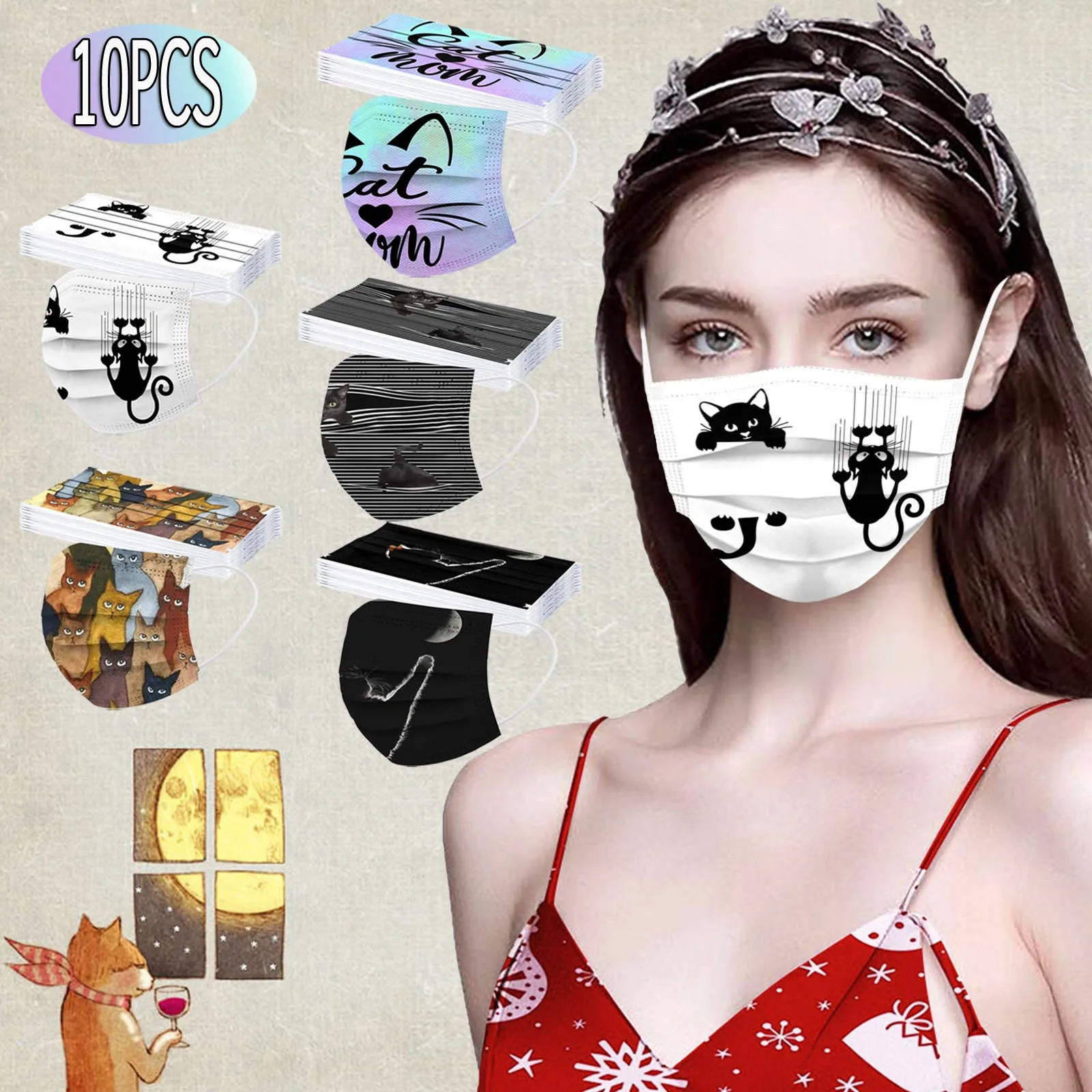10 шт., одноразовые маски для лица с принтом кошек и звезд