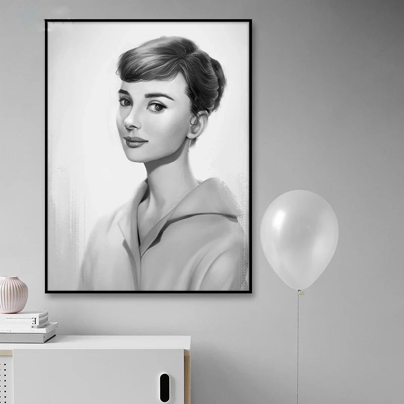 Постер в скандинавском стиле, черно-белый, Одри Хепберн, настенная живопись для девочек, настенные картины для гостиной, черно-белые