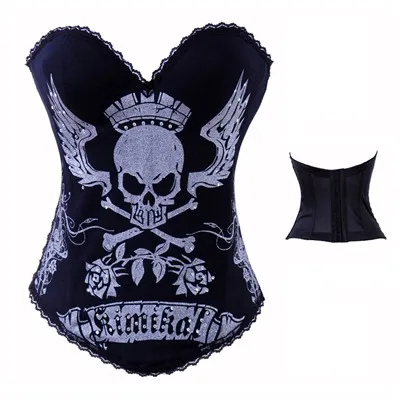 Женские топы с принтом скелета черепа, готические хлопковые Корсеты с эффектом пуш-ап, одежда для бурлеска в стиле стимпанк