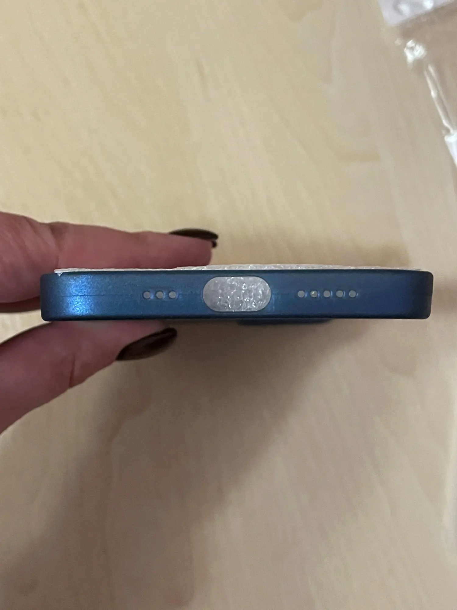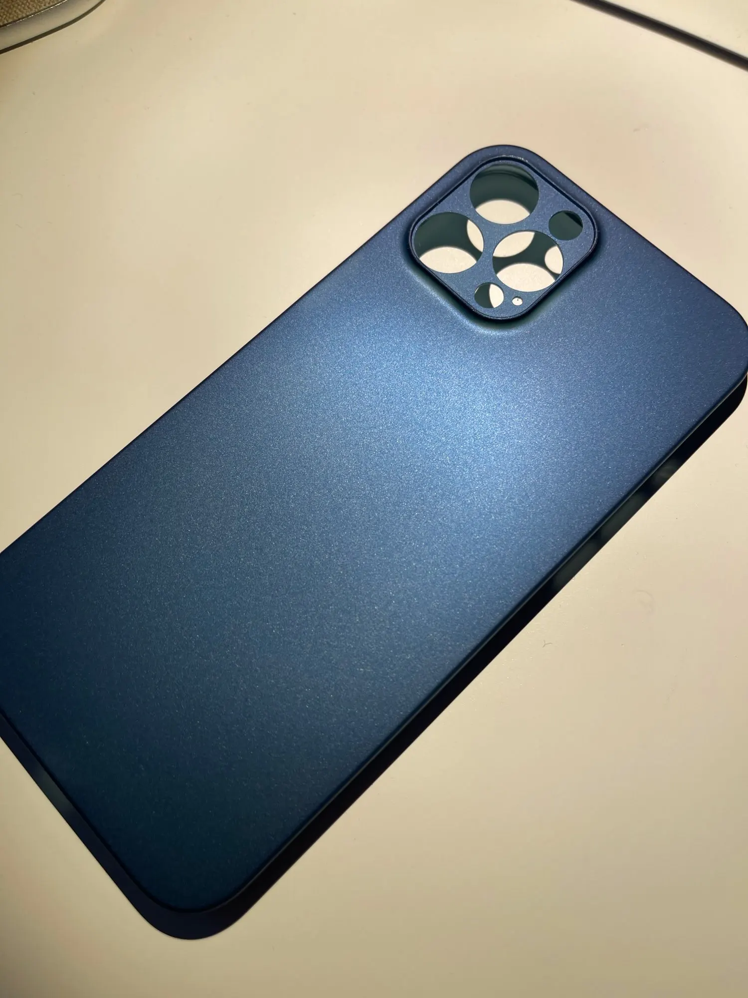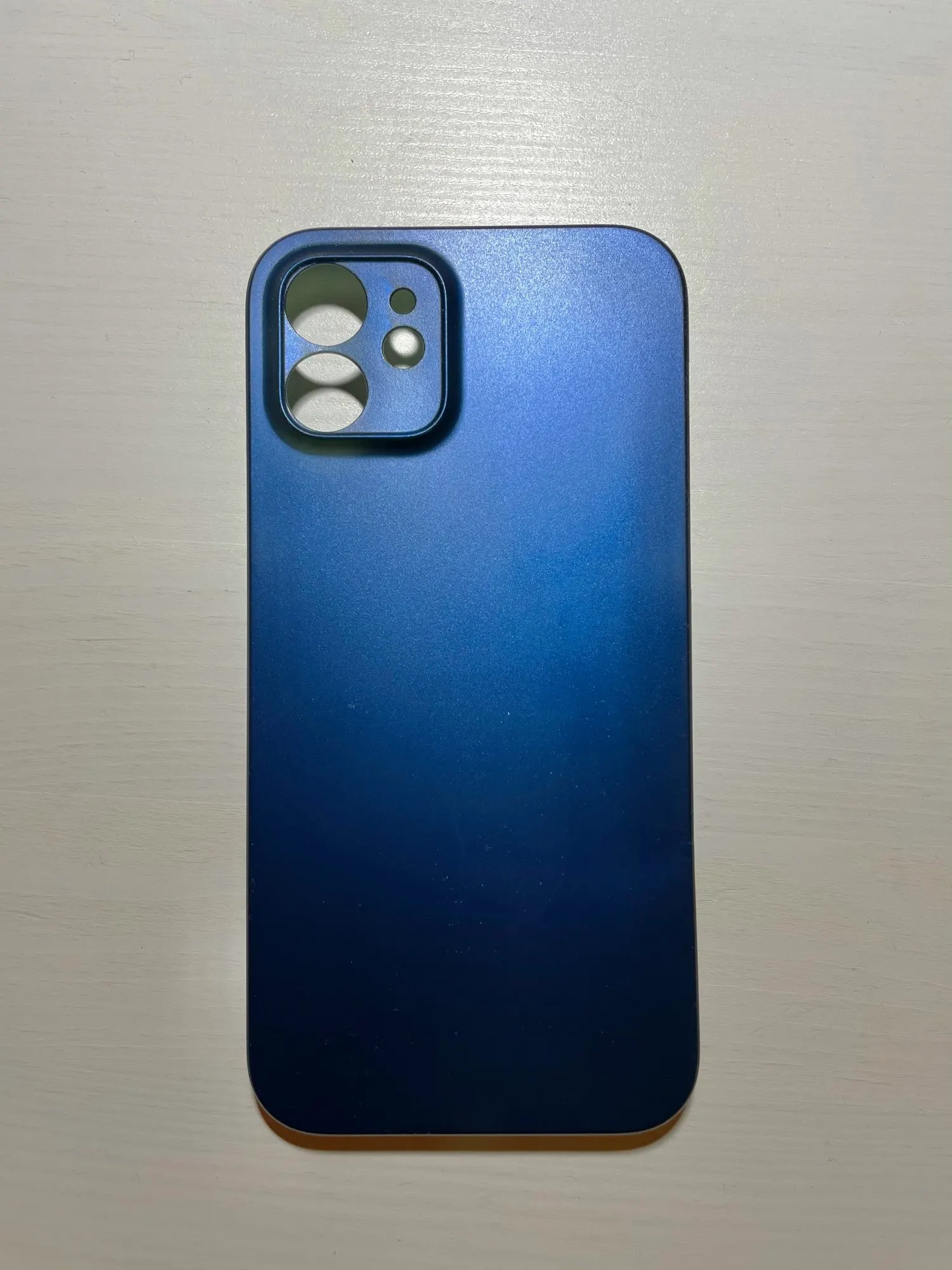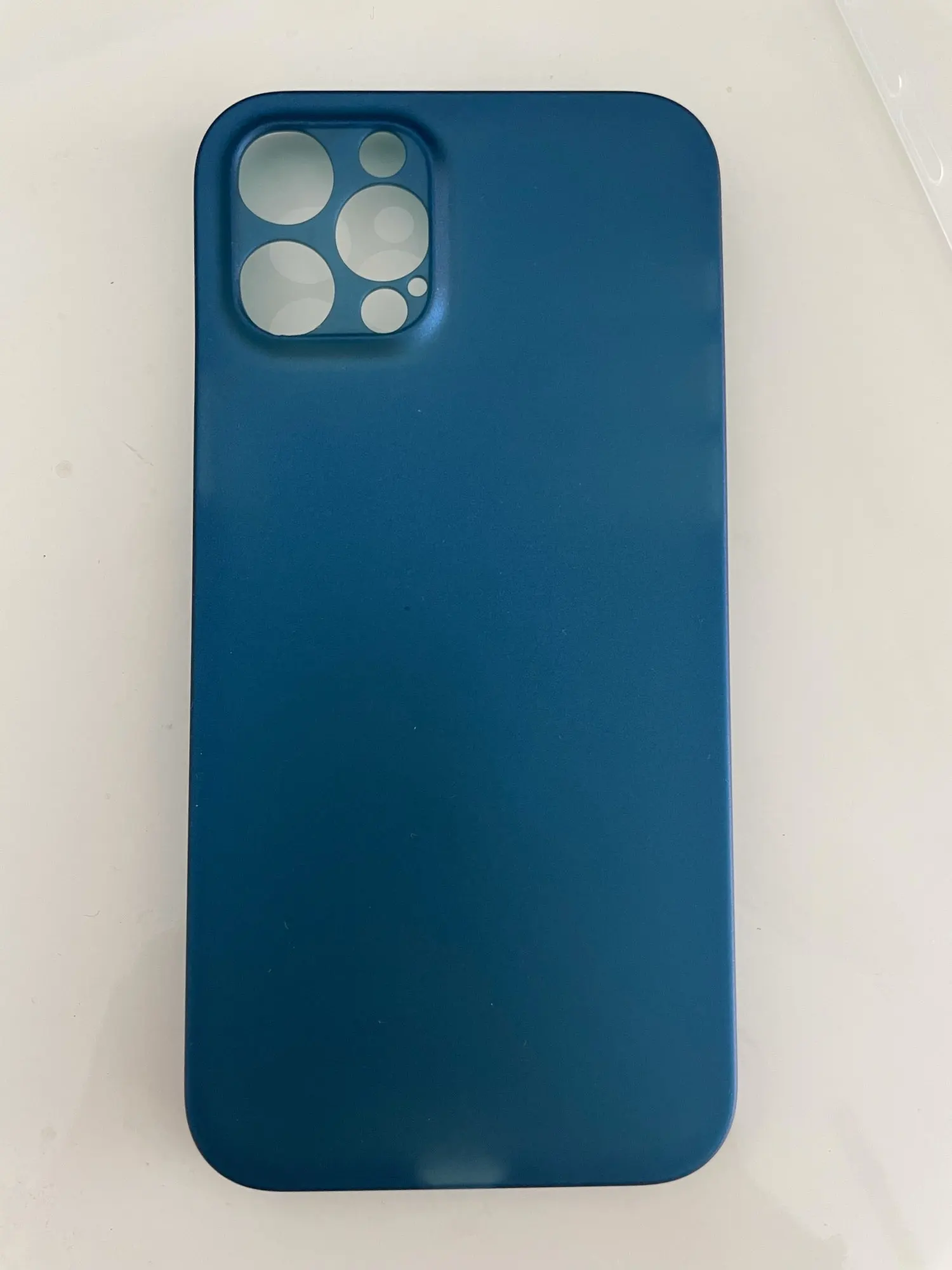 Пришёл быстрее, чем по прогнозам дня на три. Приятно. Тонкий, пластик хорошего качества. Не особо увеличивает телефон в объеме, в руке лежит хорошо, не скользкий. Но на столе скорее всего будет скользить. Пластик, естественно, обычный, не софт-тач. Есть бортик для защиты камеры от царапин, когда лежит камерами вниз. Экран от царапин не защити, не выступает в районе экрана. Там, где кнопки, отверстия, нажимать не очень удобно. Но иначе здесь технологически реализовать не получится. В общем и целом за свои деньги более чем достойно. Товаром доволен, доставкой доволен. Все пришло целое, не помятое. Упаковано нормально, в пупырчатый пакет. Можно брать вполне, денег своих однозначно стоит. Кстати, цвет приятный, насыщенный темно-синий, совсем малость переливается. С цветом телефона гармонирует. Телефон iPhone 12 темно-синий.