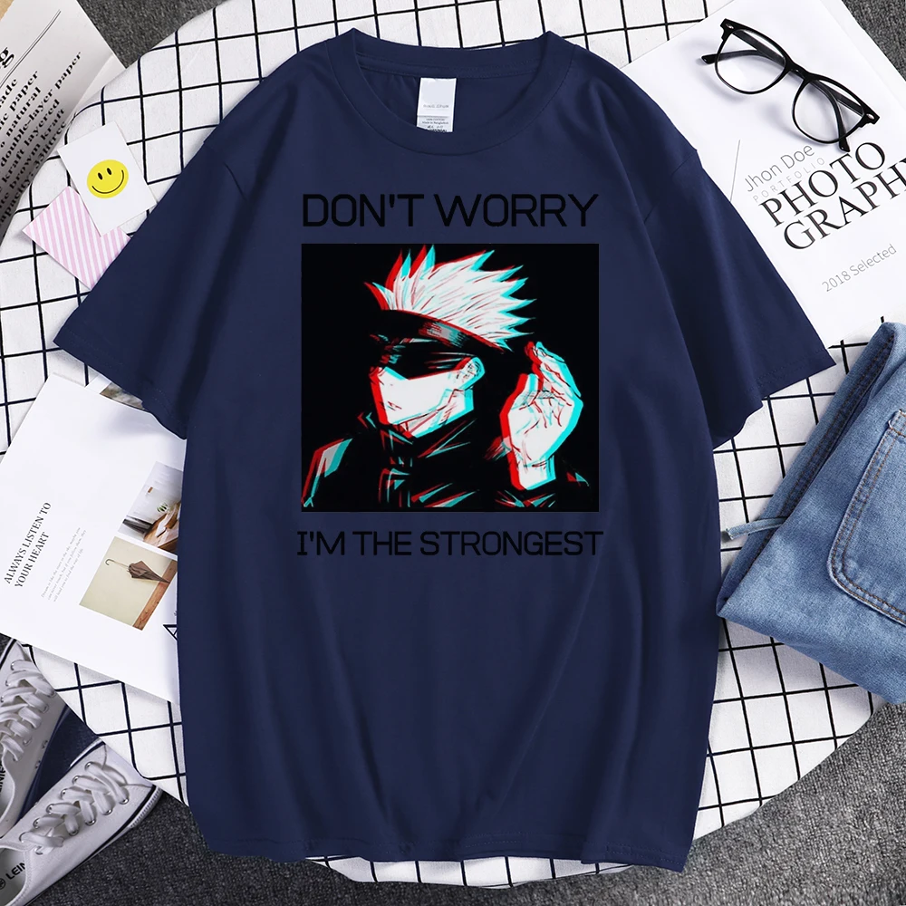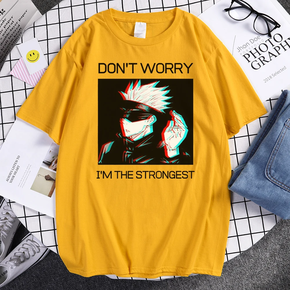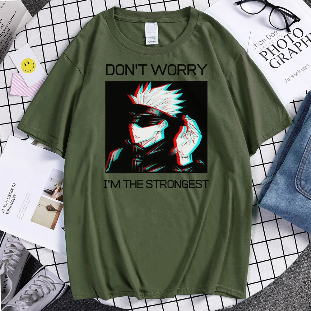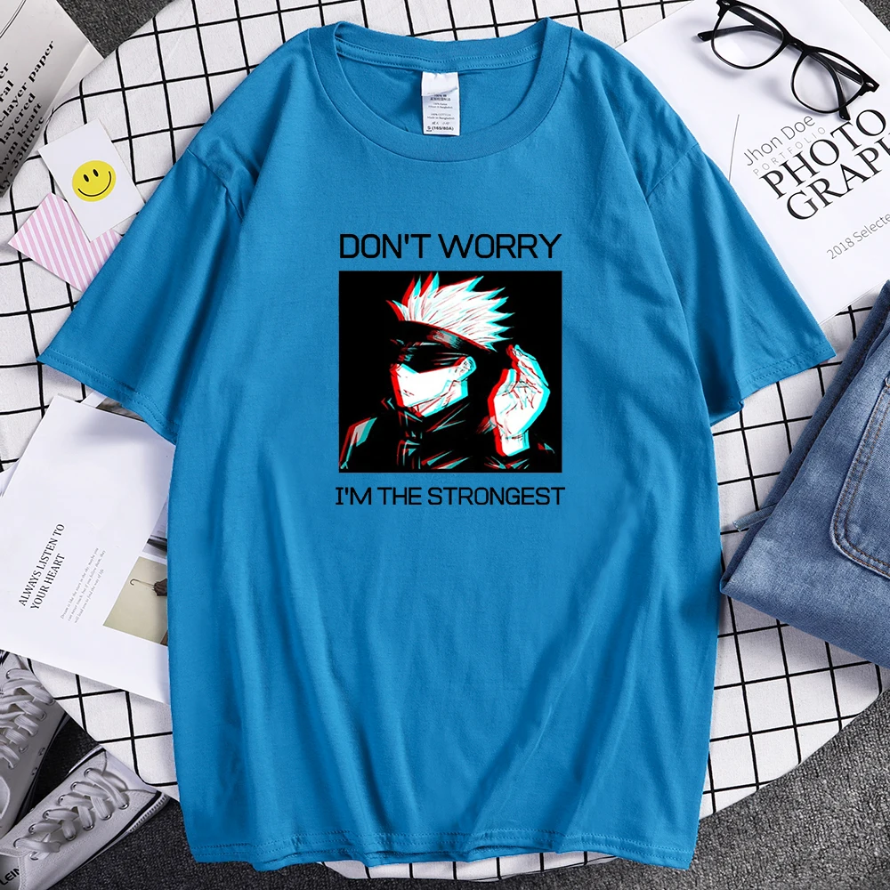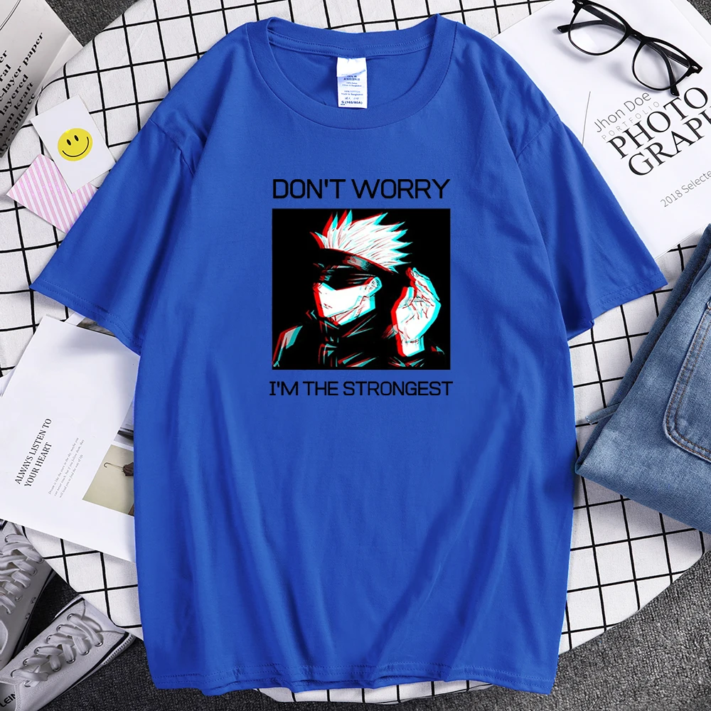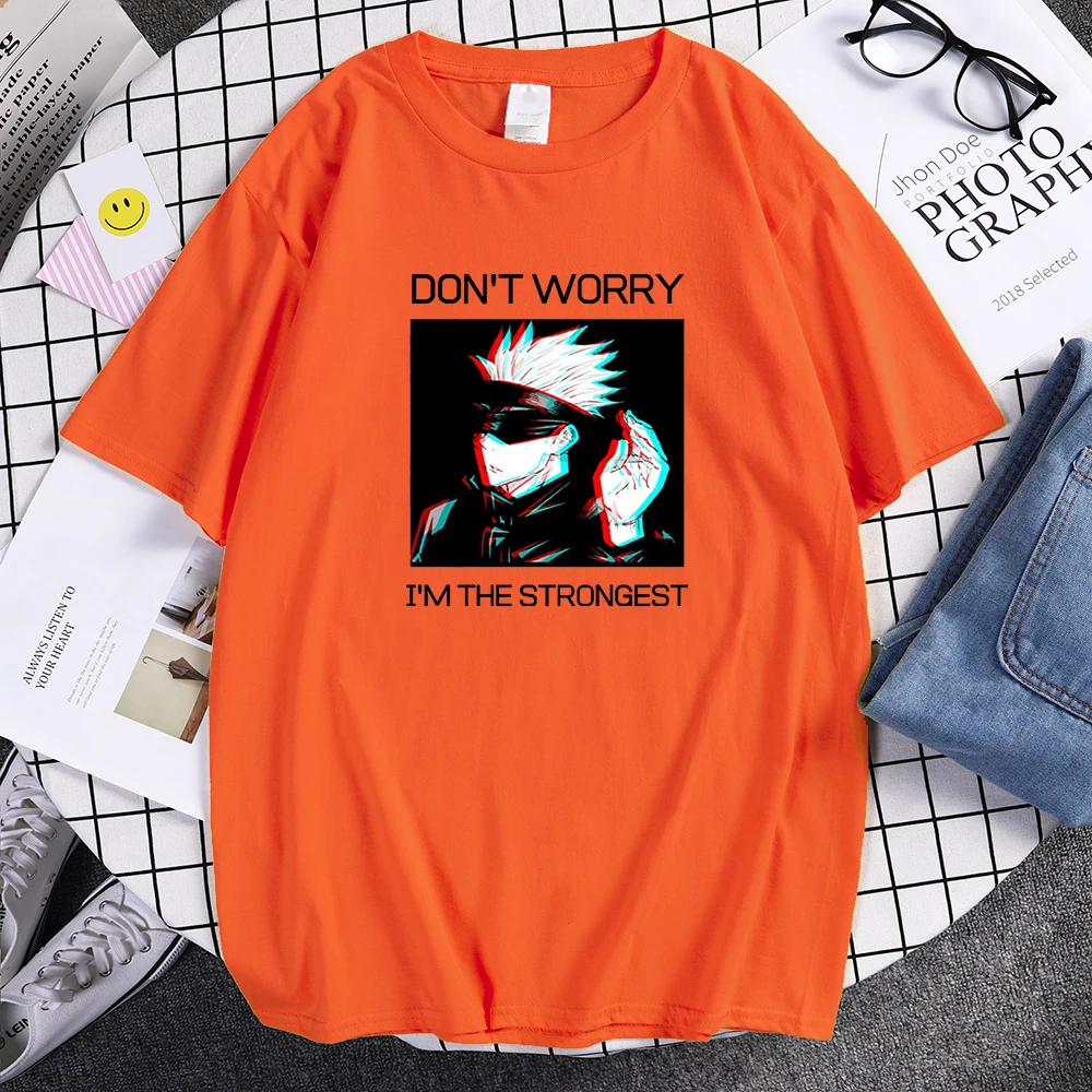 Забавные мужские футболки Gojo Satoru с аниме Не волнуйся, я самый сильный, модная футболка в стиле Харадзюку, Брендовые мужские топы в стиле хип-хоп
