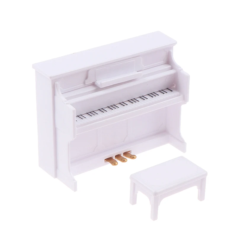 Мини рояль с табуретом, Миниатюрный белый изысканный кукольный доми...
