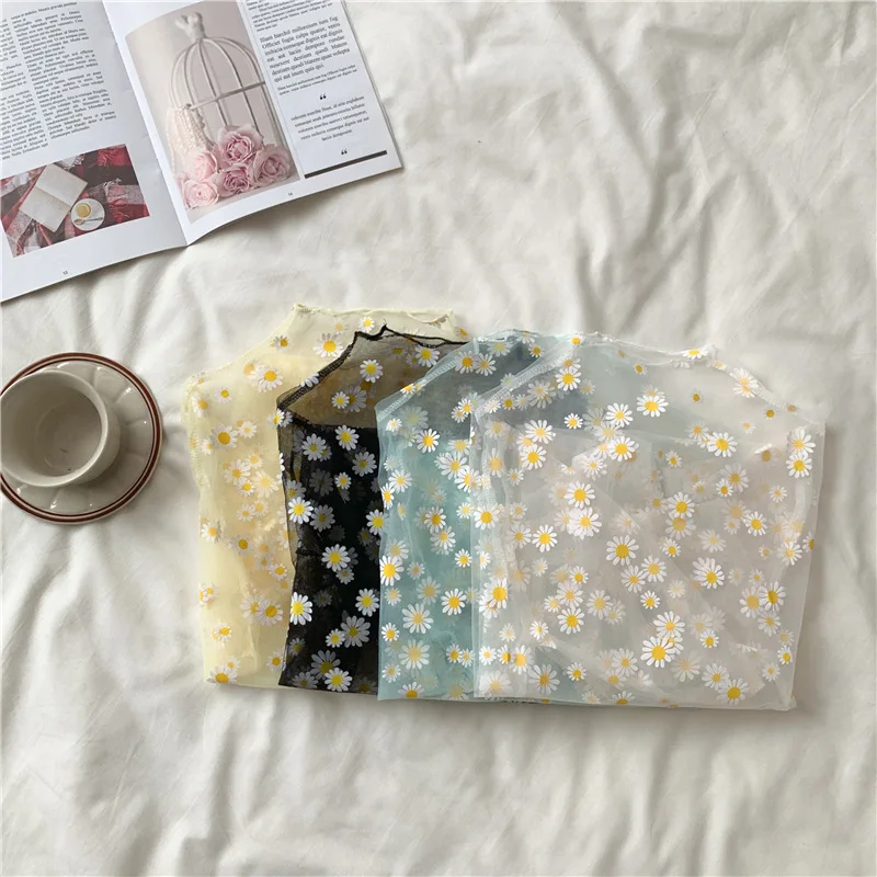 Блузка женская сетчатая с цветочным принтом, повседневный топ с принтом маргариток, прозрачная рубашка для девочек, лето-осень