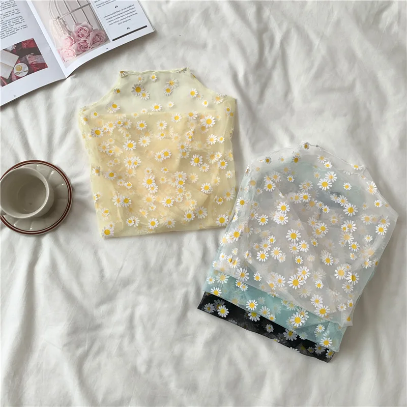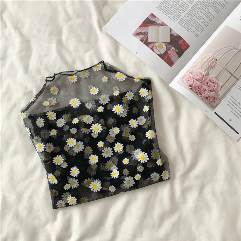 Корейский стиль, сетчатый топ с маргариткой, новинка 2020, в стиле ...