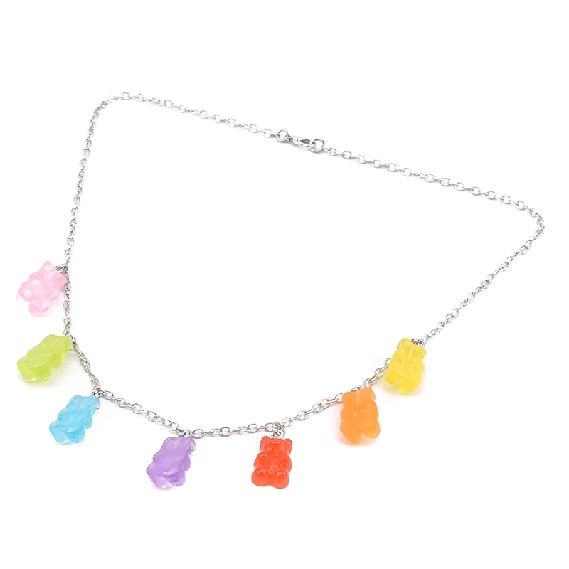 Ручной работы Симпатичные Желе Мультфильм цепь "медведь" ожерелья конфеты Цвет кулон для женщин и девушек, праздничная бижутерия, Повседневная бижутерия вечерние подарки