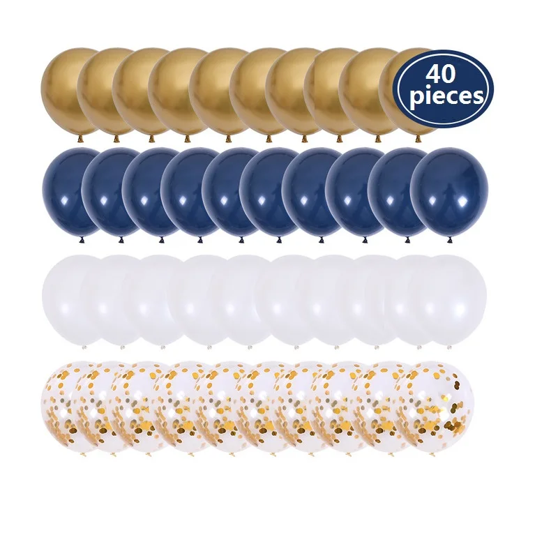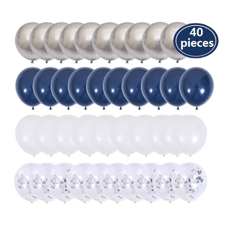 40 шт шаров Комплект взрослых на день рождения воздушные шары с гелием 12in Темно-синие вечерние хром золотые клипсы для воздушных шаров, конфетти серебро