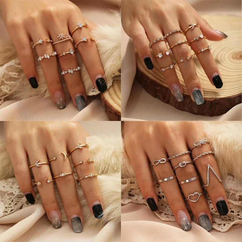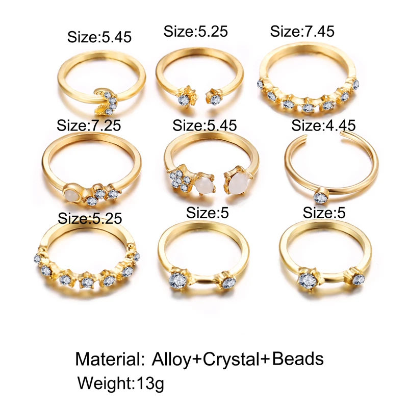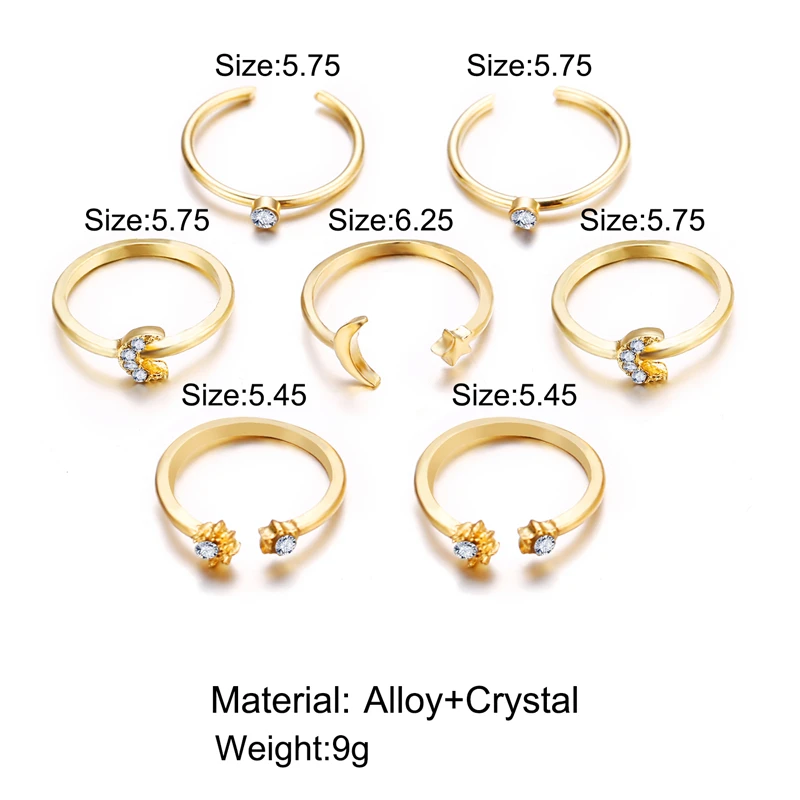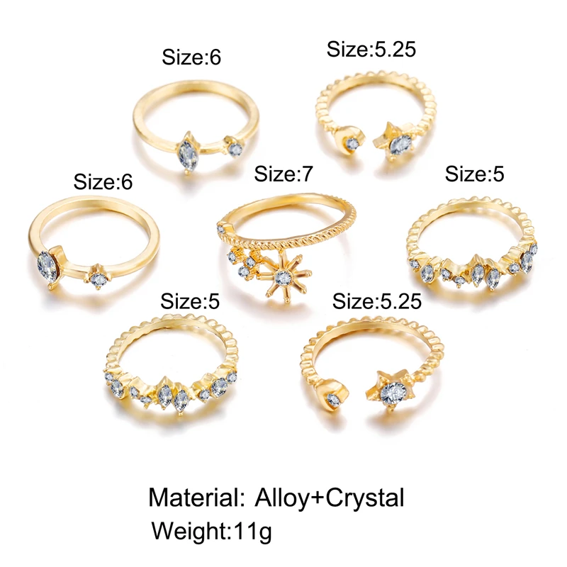 Набор женских винтажных золотых колец на костяшки пальца, с кристаллами, звездой и луной, 2021
