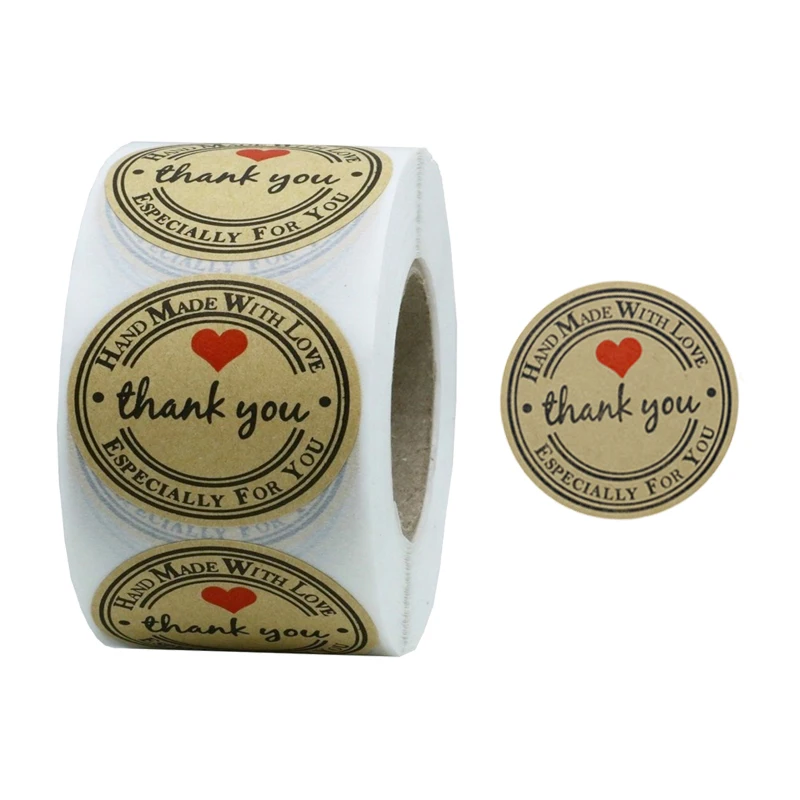 500 шт.рулон натуральная крафт-любовь Спасибо наклейки 1 дюйм самоклеящиеся этикетки для декора стен Тетрадь для заклеивания конвертов упаковка подарочная коробка