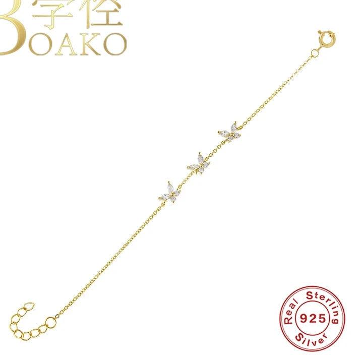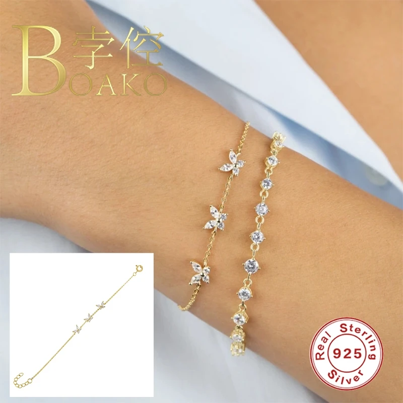 Браслет-бабочка BOAKO для женщин, цепочка из стерлингового серебра 925 пробы, ювелирный серебряный браслет