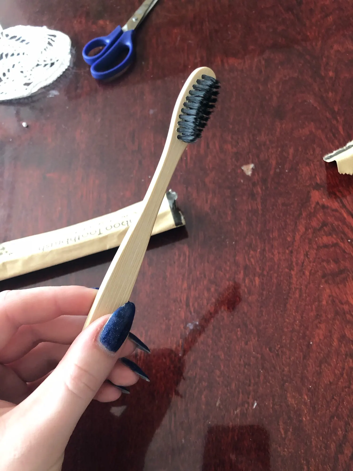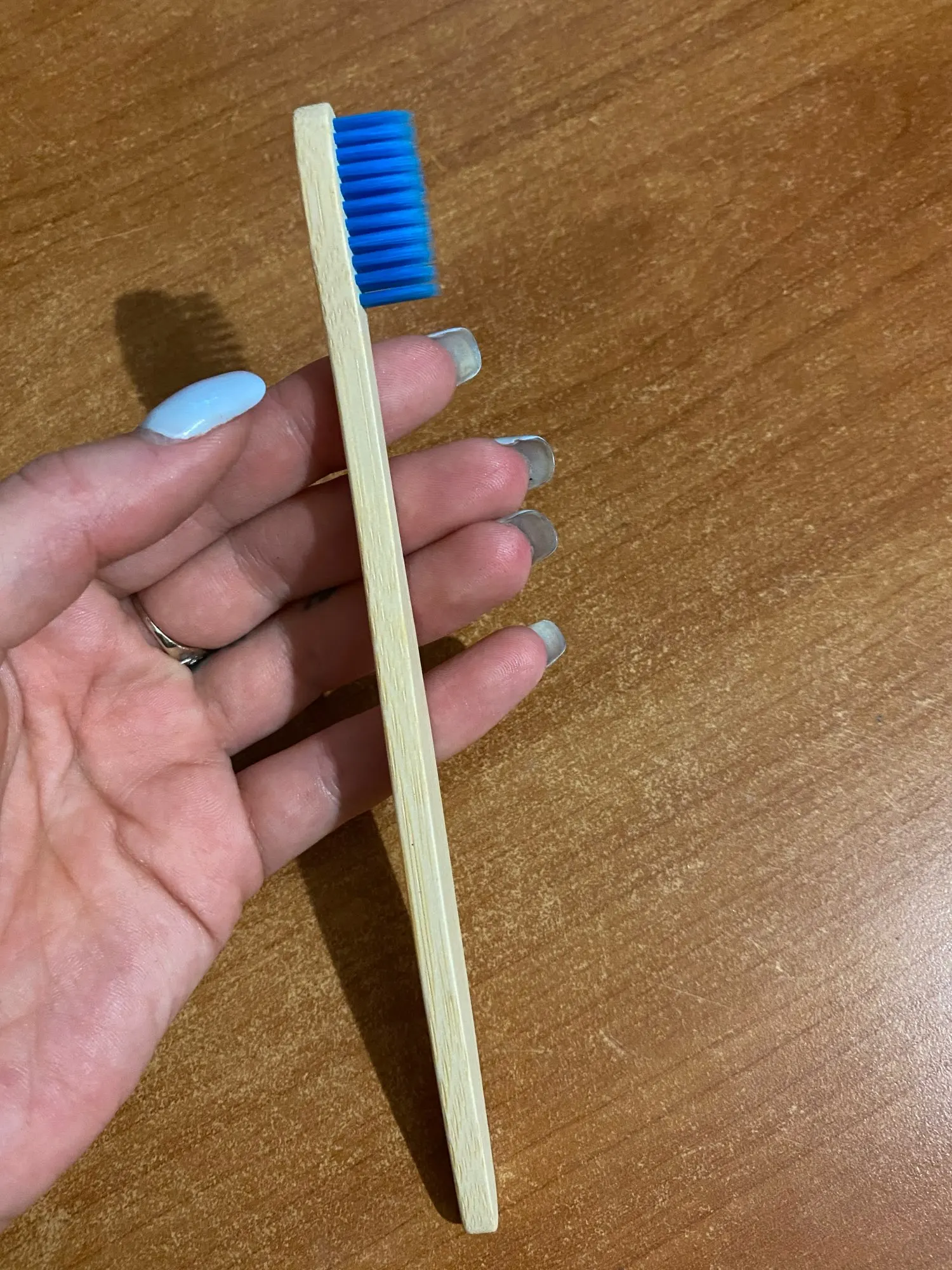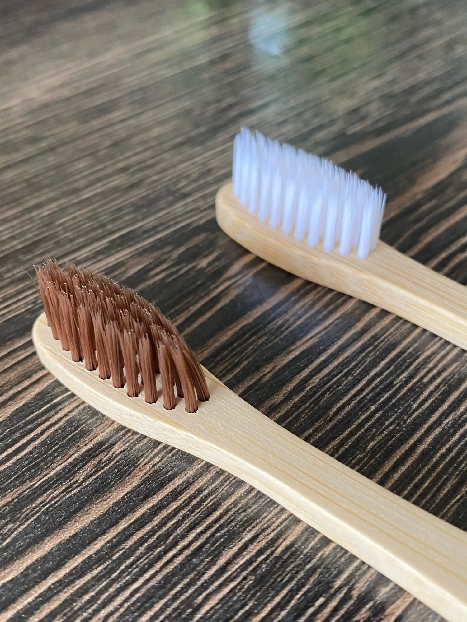 щетка мне понравилась. доставка до Киева 1.5. недели. я довольна. щетинки тонкие но плотные. боялась что будет деревянная поверхность плохо обработана и во рту останется куча заноз. но она очень гладкая и проблем не возникло)) ощущение не привычное от "дерева" во рту. но это дело привычки. я осталась довольна. по размеру она немного меньше чем привычные мне щётки. но опять таки это дело привычки. цвет дерева как на приблеженном фото. там где две щётки то цвет сильно ушел в жёлтый из за освещения.