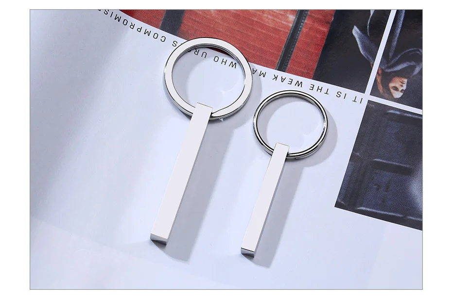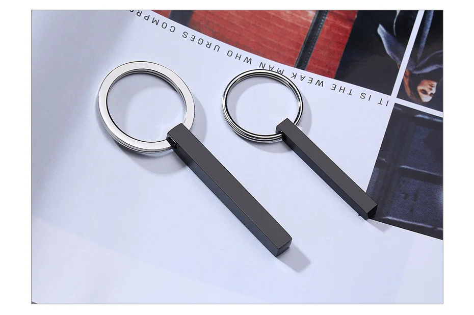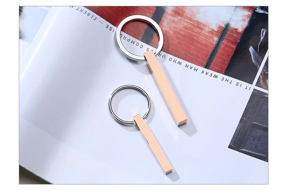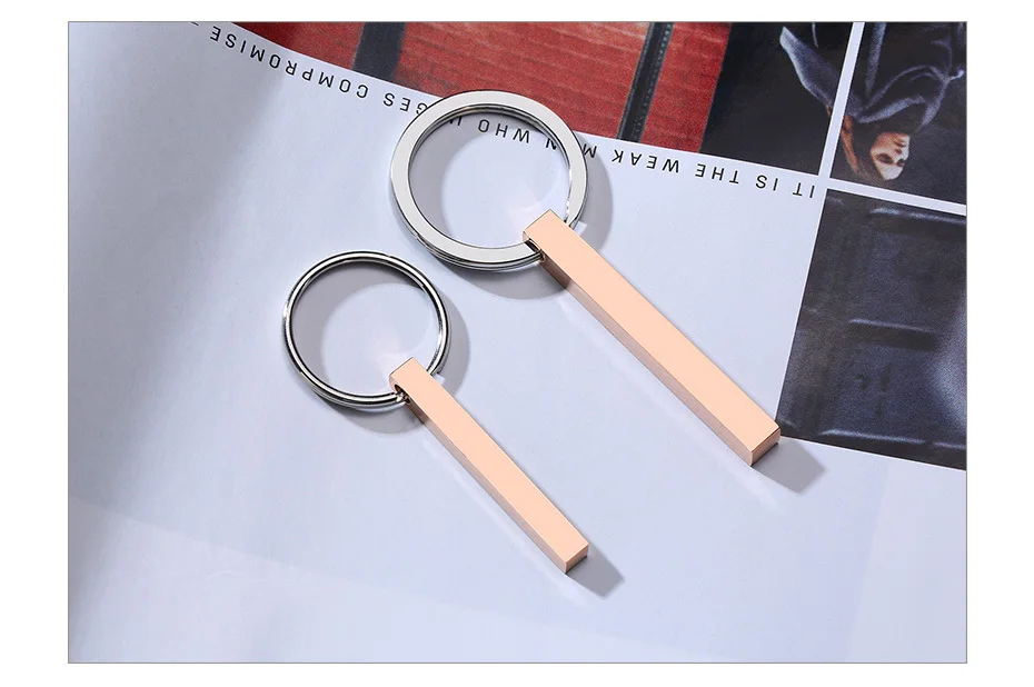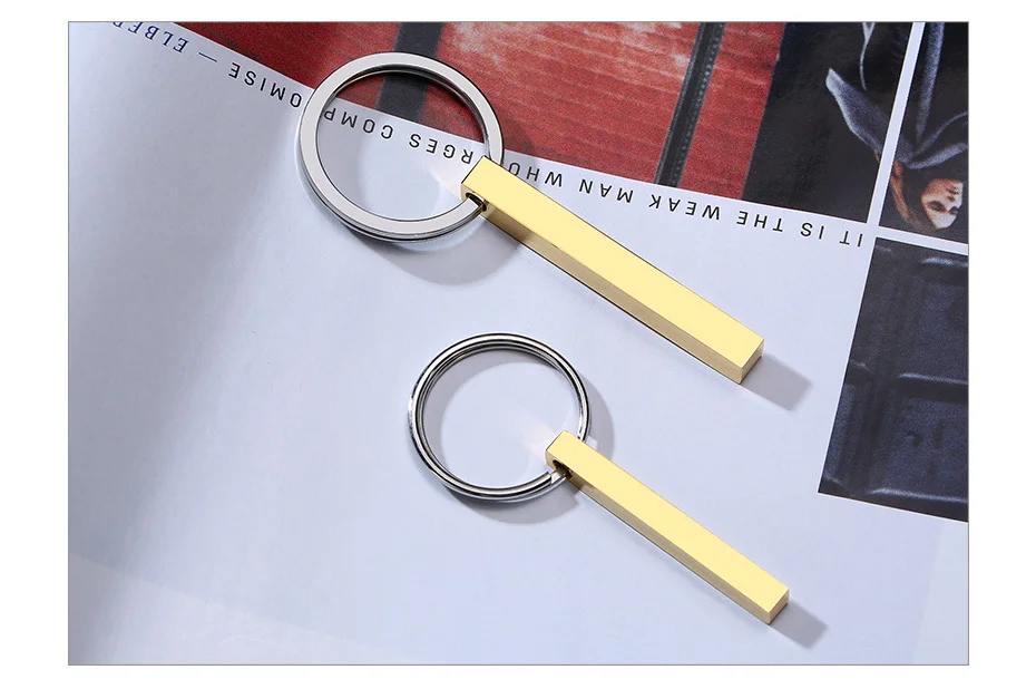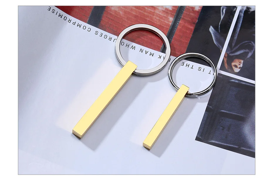 Персонализированные вертикальные брелки для ключей с гравировкой по трем сторонам для мужчин и женщин, минималистичные подарки из нержавеющей стали