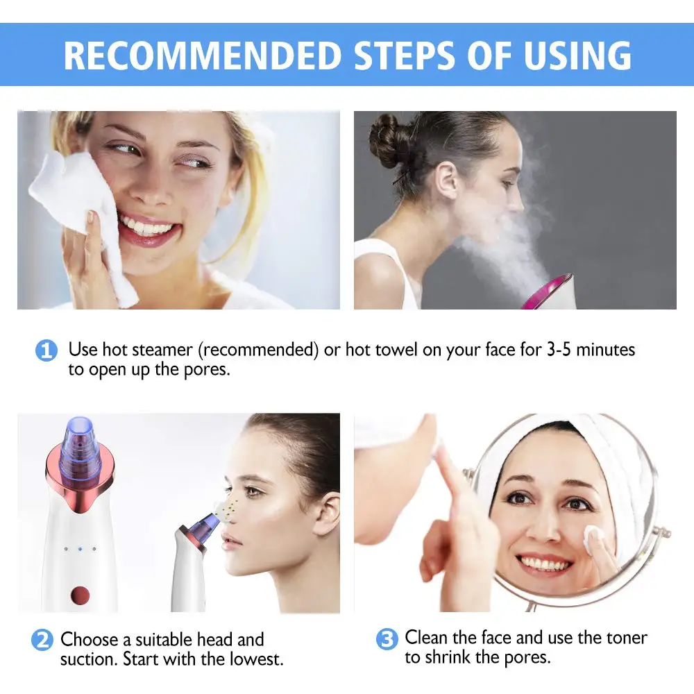 · Ваш персональный специалист по уходу за лицом-перед использованием вакуумный аппарат для очистки пор, пожалуйста, используйте горячее полотенце или отпариватель для лица, чтобы открыть ваши поры. Пожалуйста, не используйте средство для удаления черных точек в одном месте более 5 секунд, просто аккуратно проведите вакуум для пор вверх и вниз в одном направлении.