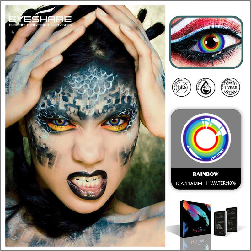 Цветные линзы EYESHARE, 1 пара, косплей, цветные контактные линзы ed для глаз, радуга, Хэллоуин, косметика, цвет искусственных глаз