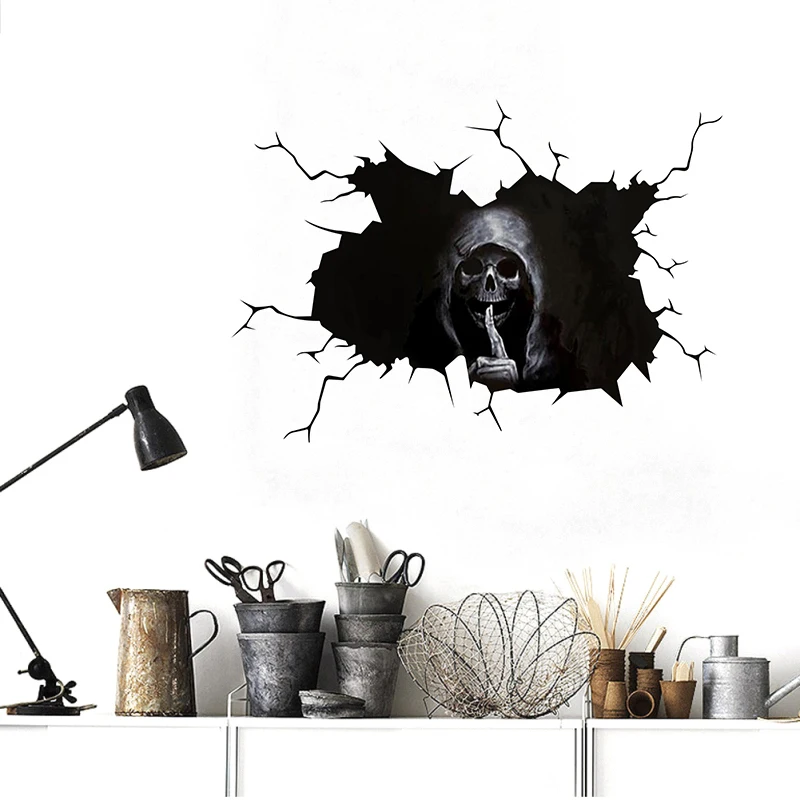 Happy Halloween стены пол стикер ужас наклейки на стену Тихая Череп...