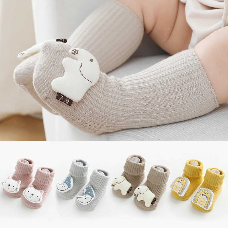 Новые детские носки на весну и осень, аксессуары с мультяшными животными, детские носки с дозатором, Нескользящие Детские носки, хлопковые носки для новорожденных