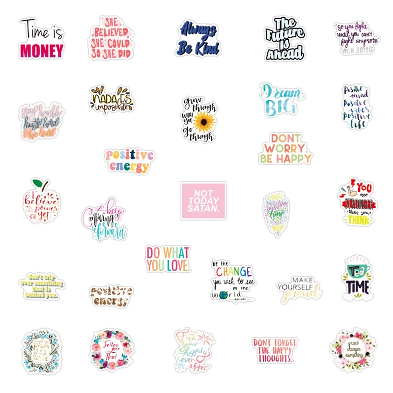 50100 шт мультфильм английские буквы вдохновляющие цитаты Стикеры s...
