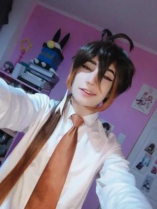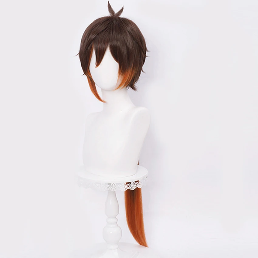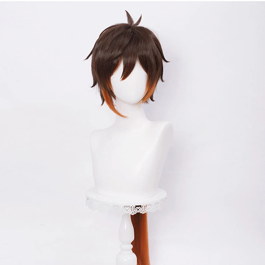 Парик для косплея Genshin Impact Zhongli длиной 90 см, Рождественский коричневый оранжевый парик, термостойкий синтетический парик для косплея из аниме, костюм на Хэллоуин