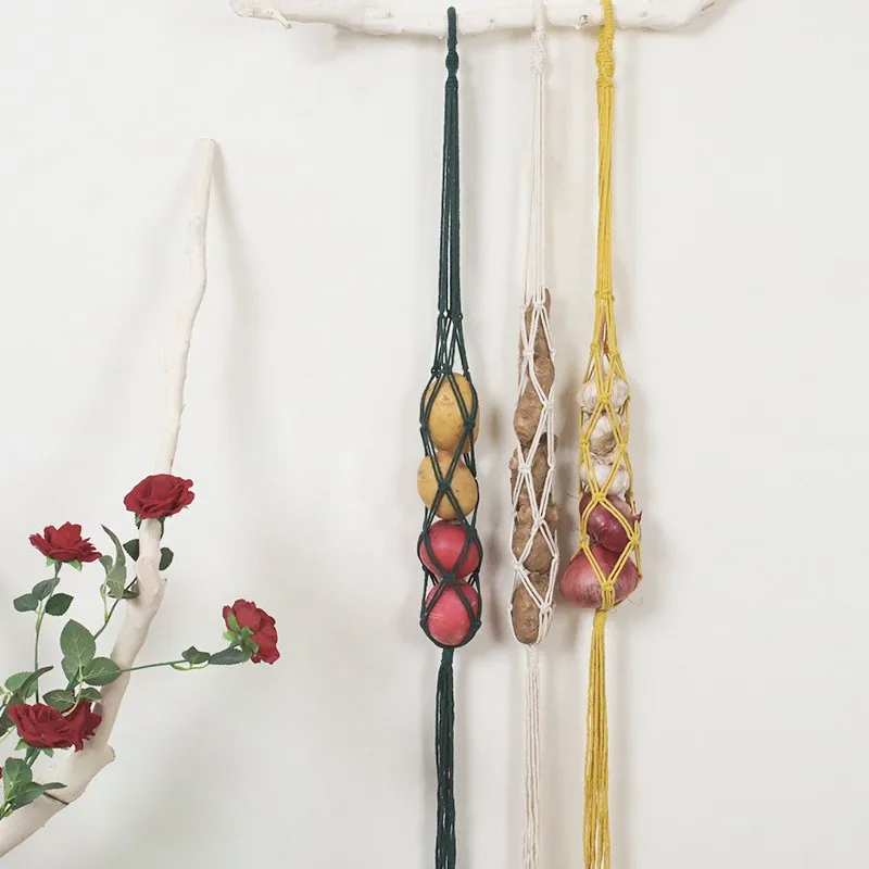 Настенная подвесная корзина для фруктов макраме, кухонный органайзер для хранения картофеля, лука, овощей, хранение продуктов, внутренний декор в стиле бохо