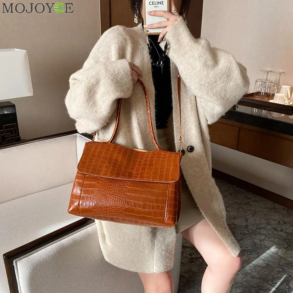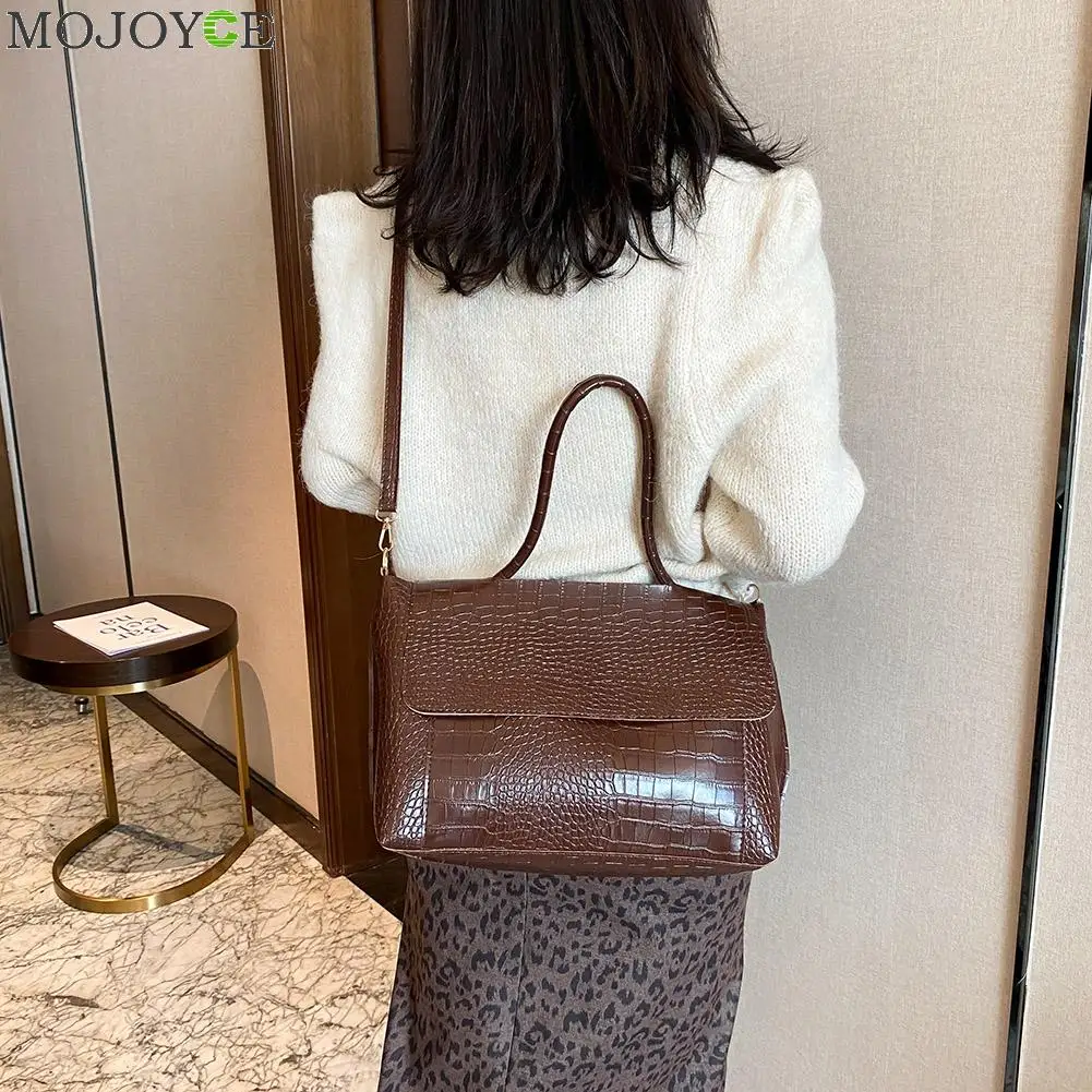 Женская вместительная сумка через плечо, однотонный мессенджер-тоут под аллигатора, дорожные ранцы, популярная простая повседневная дамская сумочка