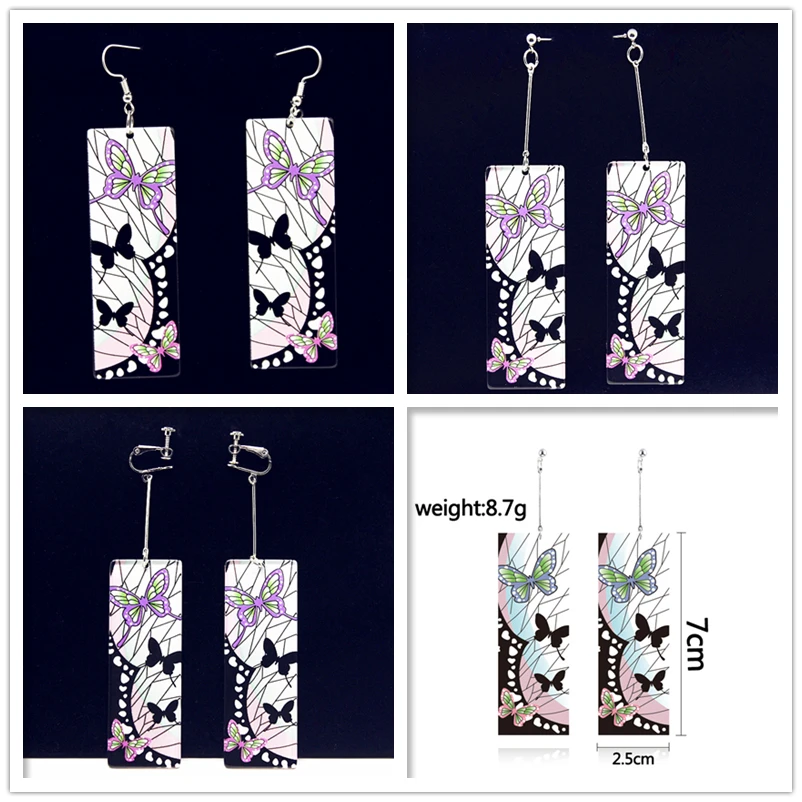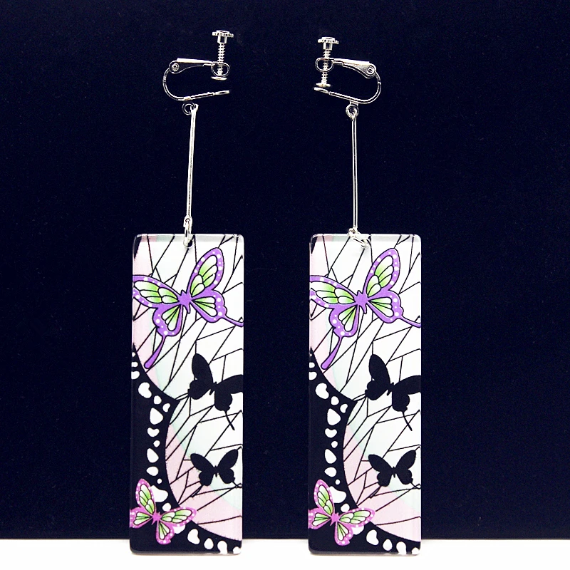 Серьги-бабочки с акриловыми ушками в стиле аниме Кочо Нино, серьги для косплея демонов, убийц киметсу, ювелирные украшения для женщин