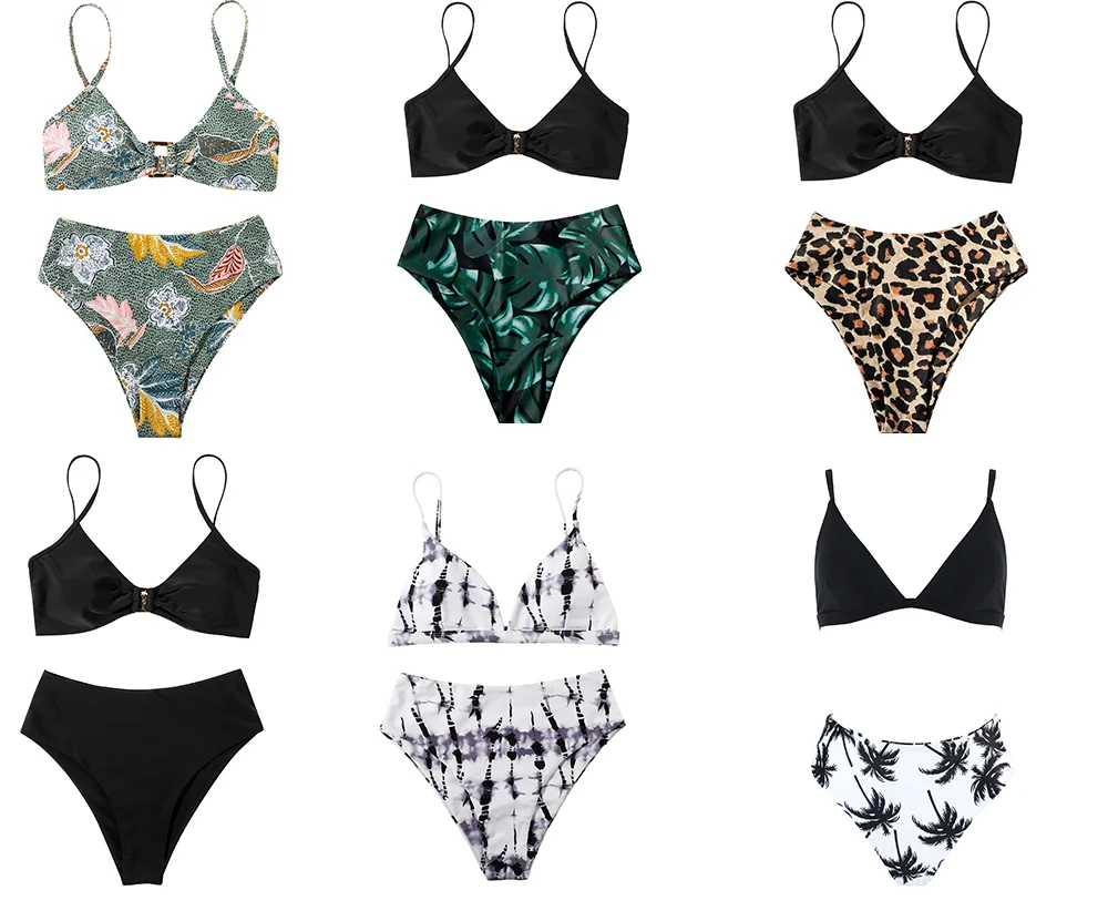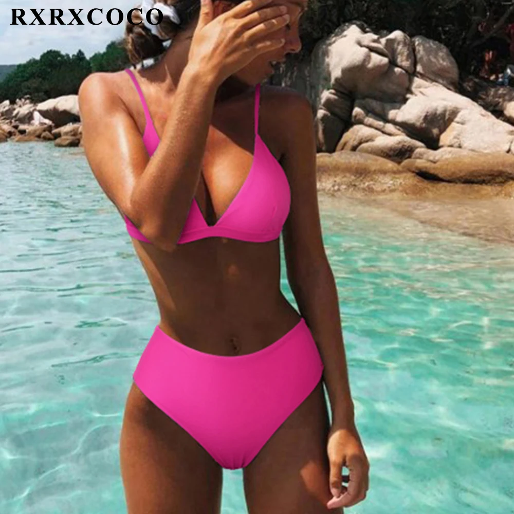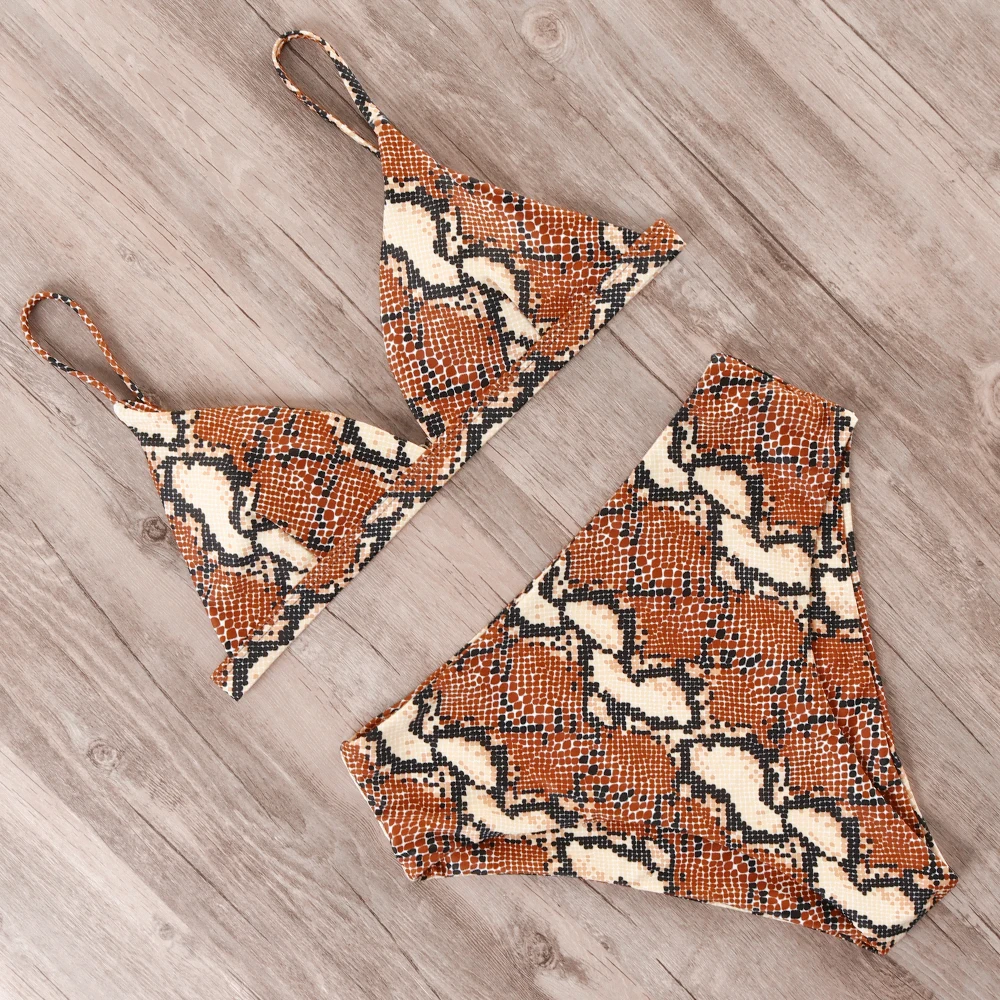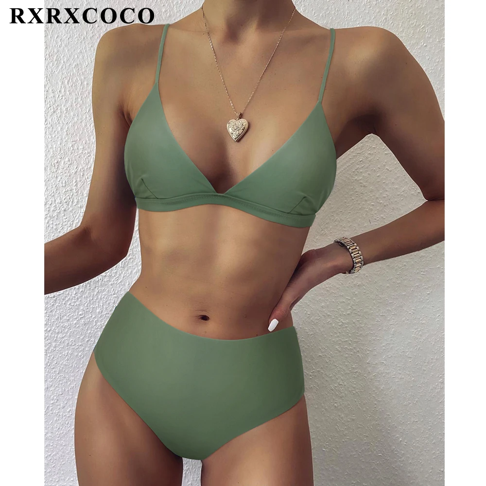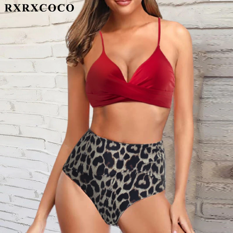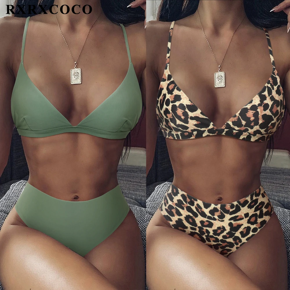 RXRXCOCO купальники с высокой талией, женская пляжная одежда с пуш-ап, 2021, однотонный купальник, сексуальный женский леопардовый купальник с животными, бикини