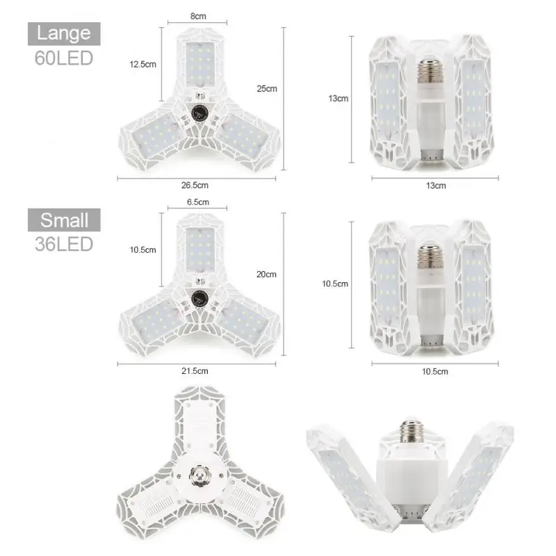 Основные сведения-супер яркий светодиодный гараж светильник с 3 ультра-яркая подсветка с регулируемым Abs светодиодный лампы головки-Особенности светодиодный технологии с 3*20/3*12 шт. наивысшего качества диоды для подавления переходных скачков напряжения, 4000/6000 люмен, таким образом, 6000K Дневной светильник, CRI80 +, средняя база E26/e27, винт затем может использоваться. Доступны для 85 в и 265 в области ввода, 50000 часов срока службы для вашего гаража, обеспечивая лучший опыт внутреннего освещения.