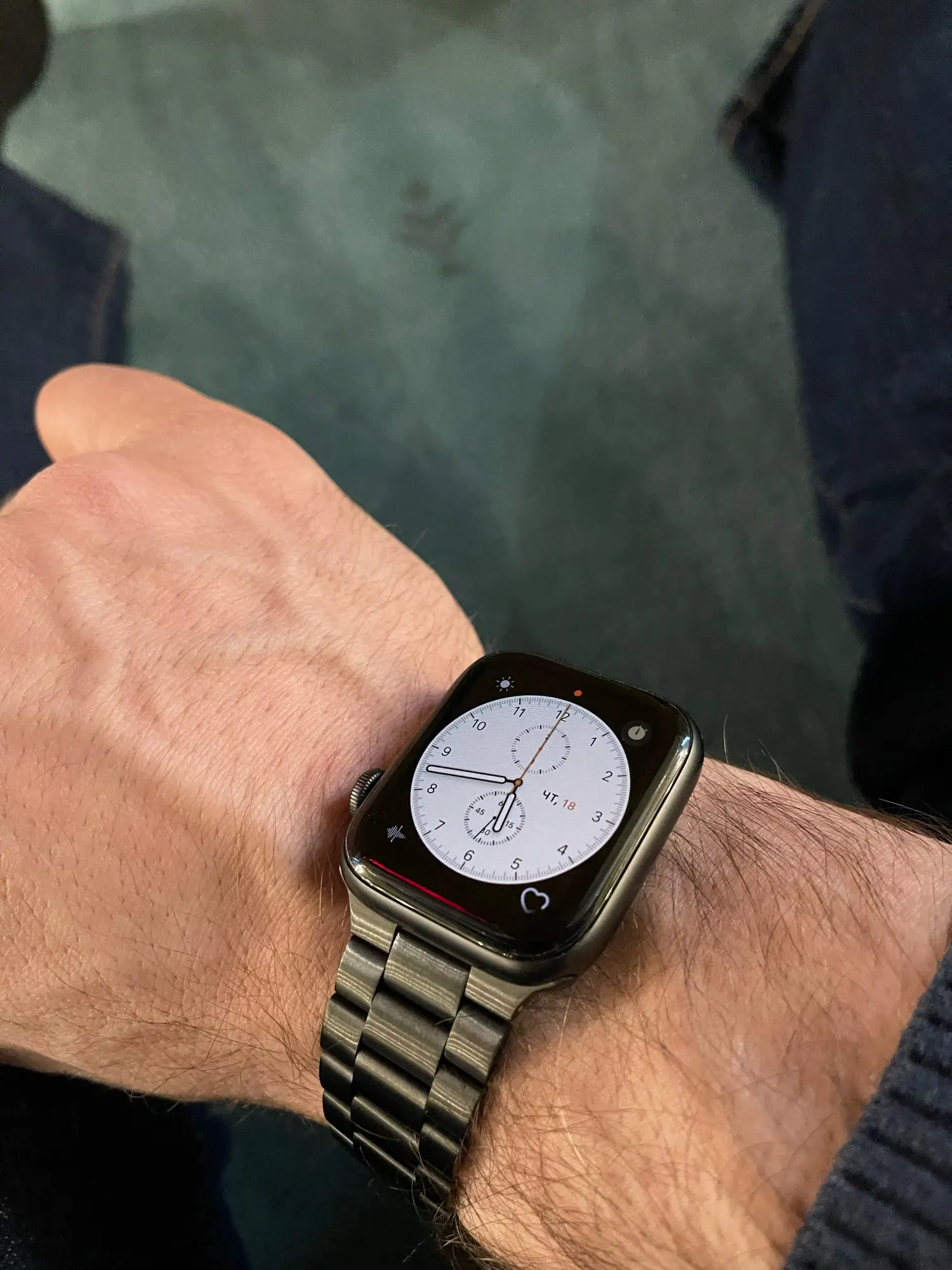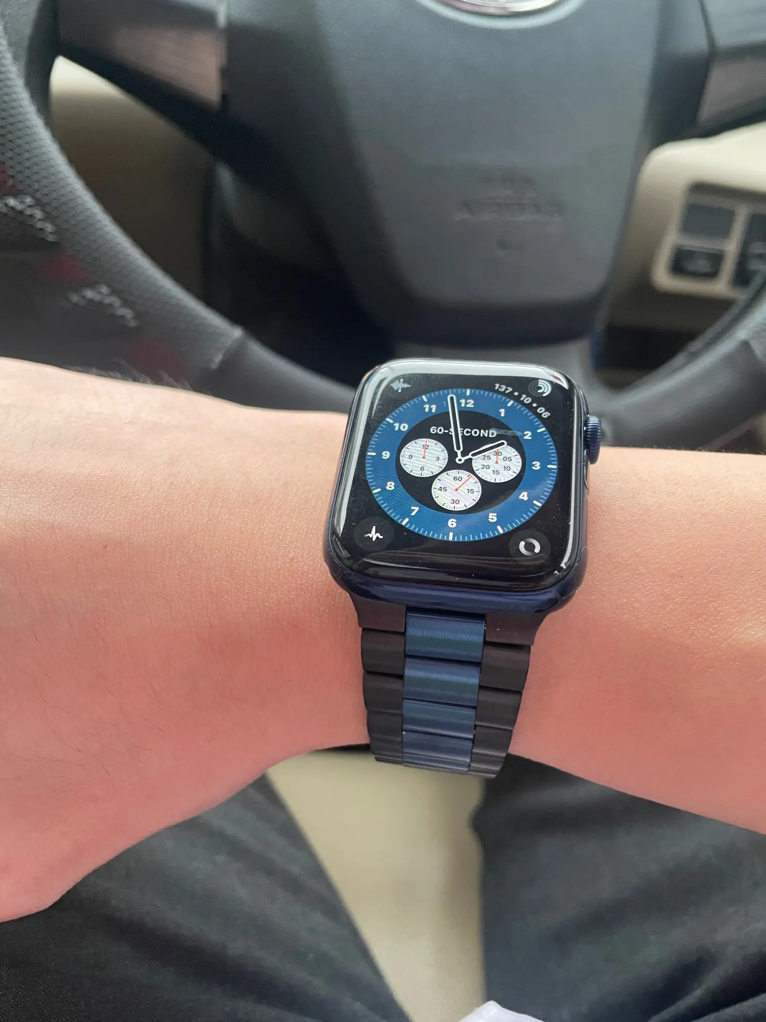Плохое качество и очень сложно настроить размер ремешка. Это довольно узкий по сравнению с обычным металлическим браслетом часов 44 мм. Не рекомендуется.