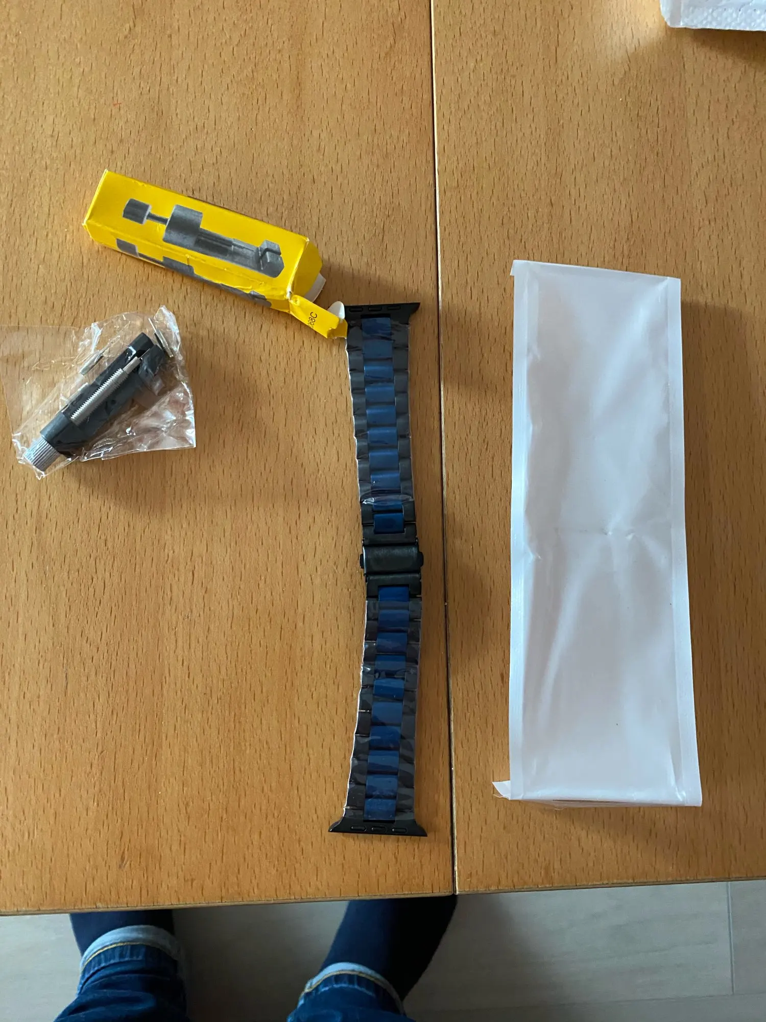 Форма разумная, это то же самое, что и ожидалось, я доставил его в магазин часов, чтобы выпустить 5 звеньев, потому что я потеряю свои инструменты и не могу быть достаточно терпеливыми, чтобы открыть самостоятельно. Он хорошо сидит и не такой тяжелый. Проблема начинается с того, что я вижу, что цвет переходит к свету, когда он яркий, синий стал светлее синим, что он отличается от синего цвета часов. Если у вас разные оттенки синего. Тогда это нормально для вас. Но если нет, не делайте этого. Честно говоря, я не знаю, что если какой-либо ремешок имеет точно такой же синий, как у apple watch.