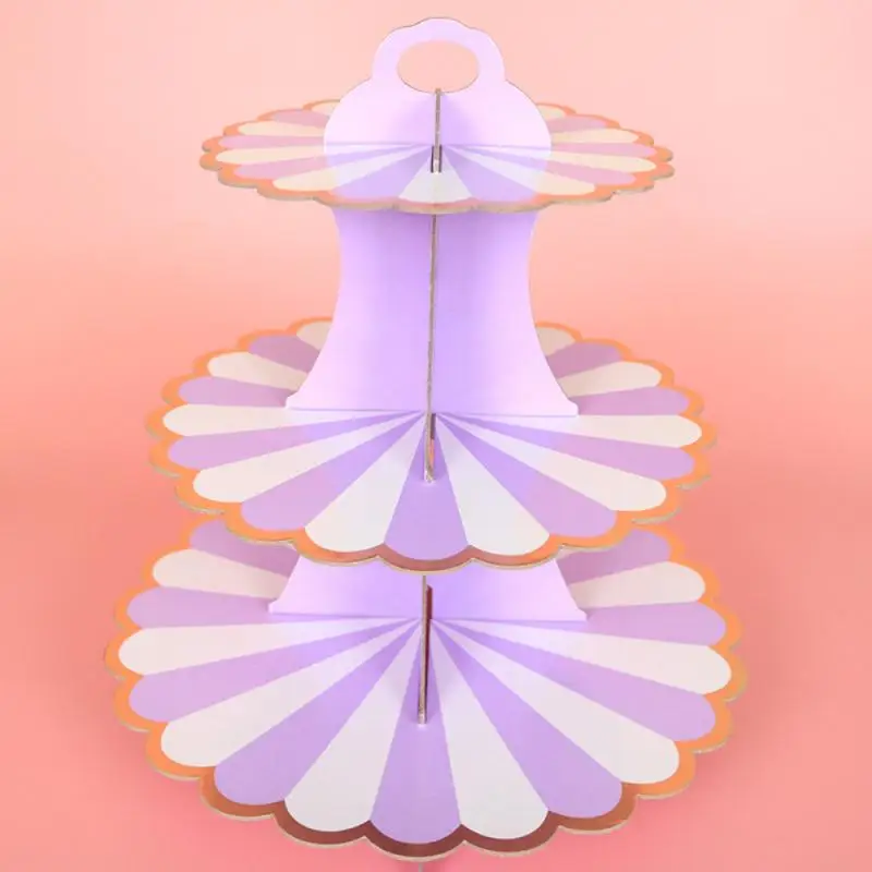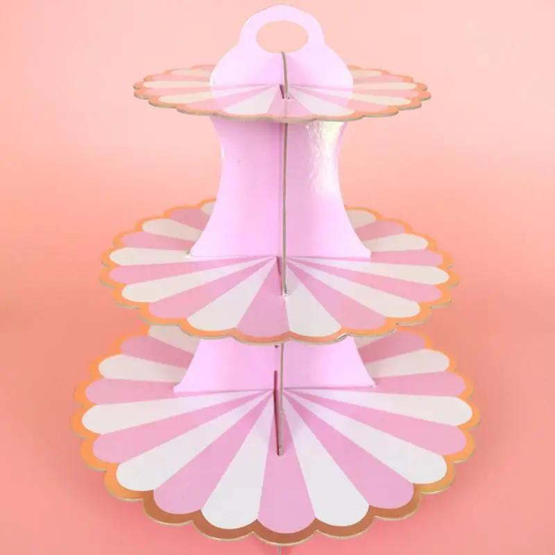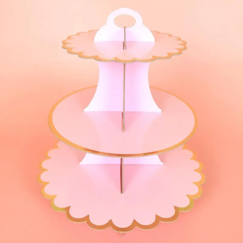 3-Слои стенд кекса круглый картон торт складной держатель для украшения для свадебного торжества и дня рождения украшения десерт столовых принадлежностей