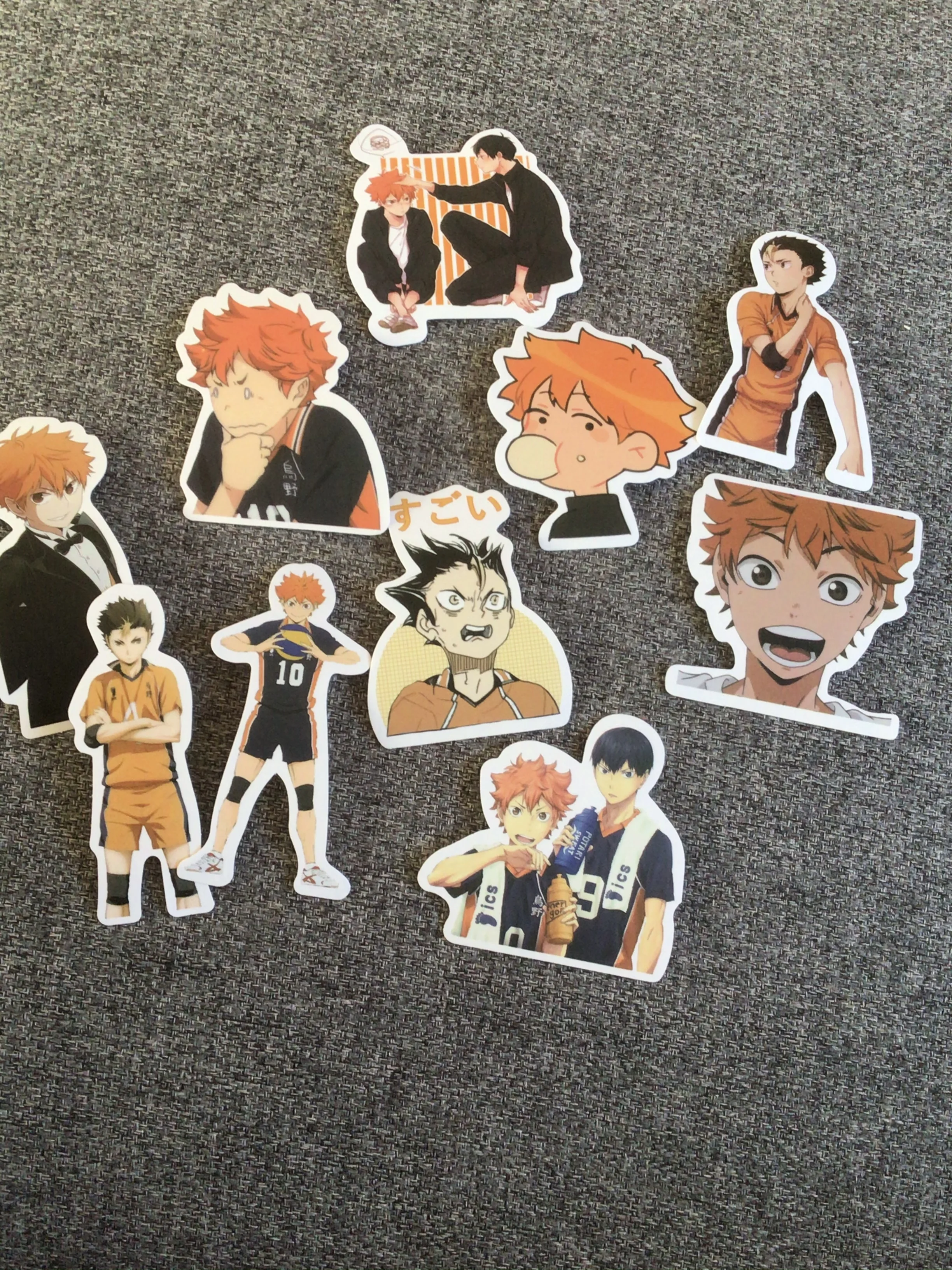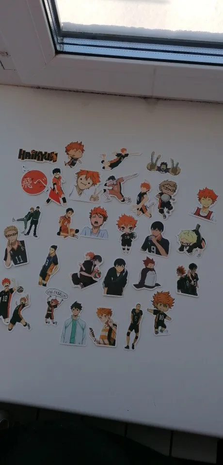 попался один Хината и Кагеяма, было 2 стикера с Цуки и парочка с Ойкавой. Ну и еще по одному Бокуто и Тендо
