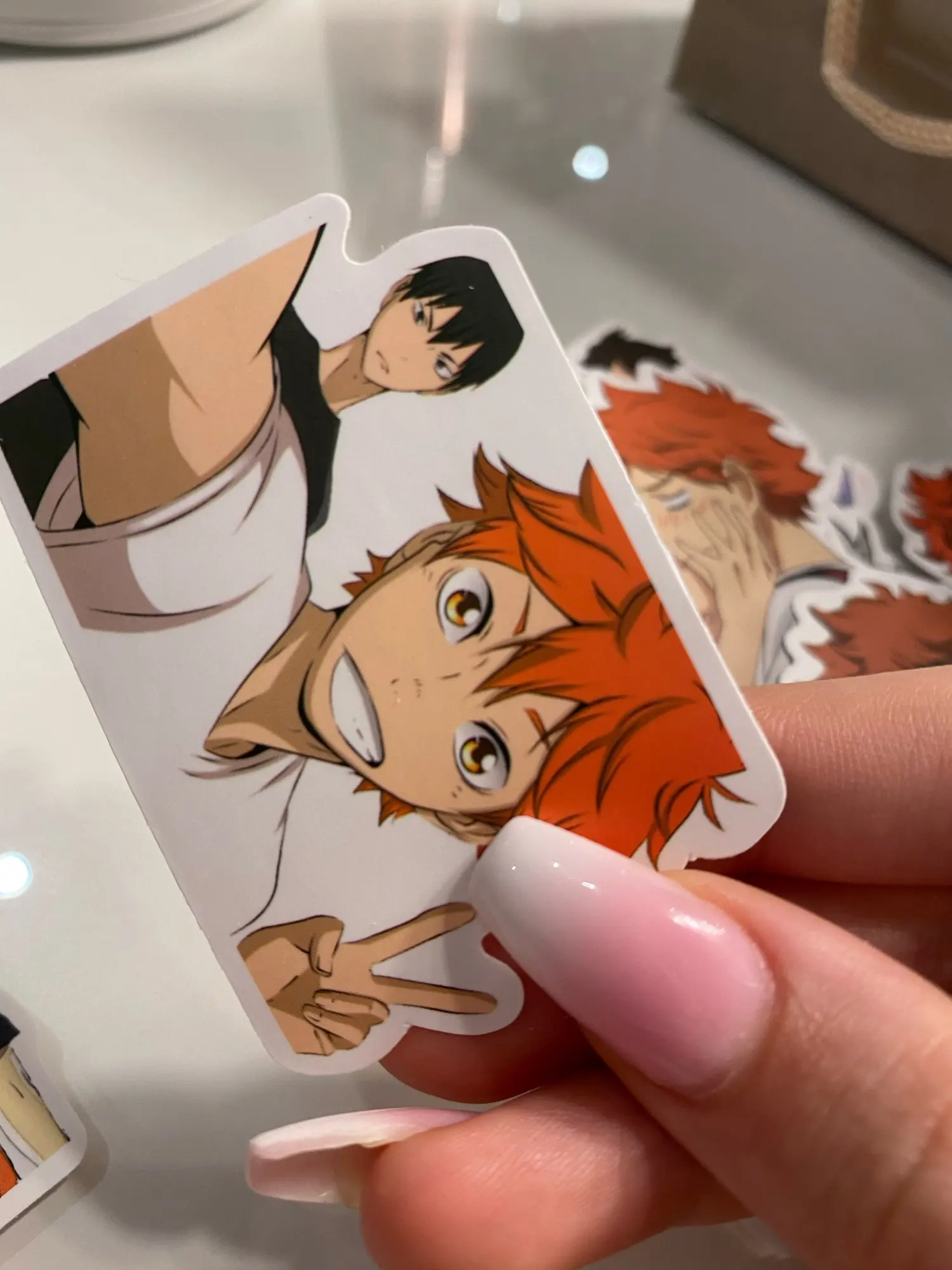 Наклейки понравились, Рекомендую, материал хороший, качественный вариант для подарка. Не много мало Кенмы но ладно, ещё не много раздражает белый фон во круг наклейки, не которые приходятся обрязать :3