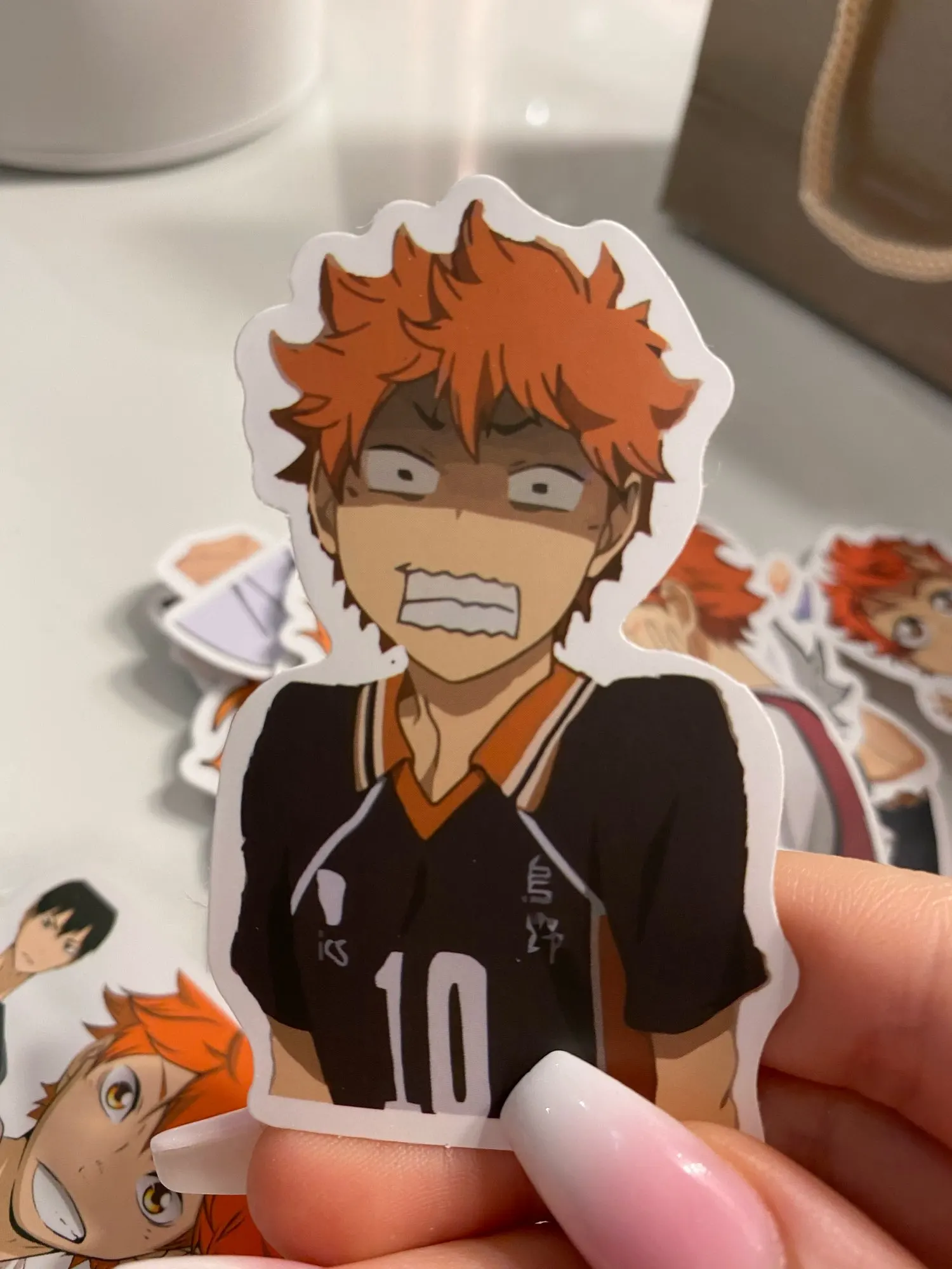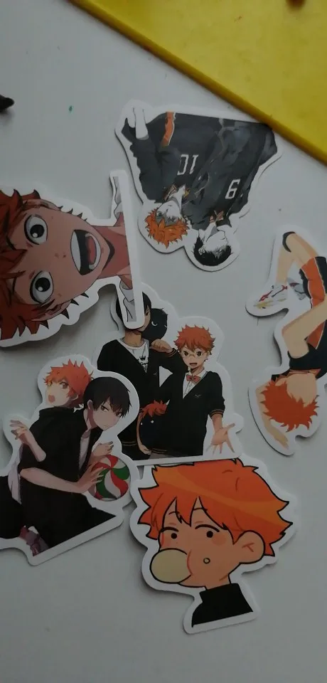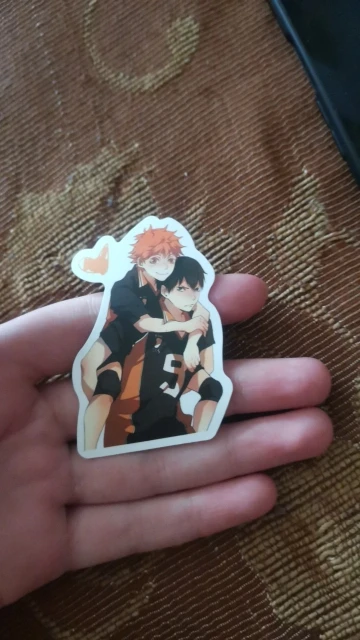 купила 30 стикеров. там все в Хинате, 2 Ойкавы, 3 нишиноя, кагеямы тоже чуть чуть, но есть там он с хинатой! короче для любителей хинаты