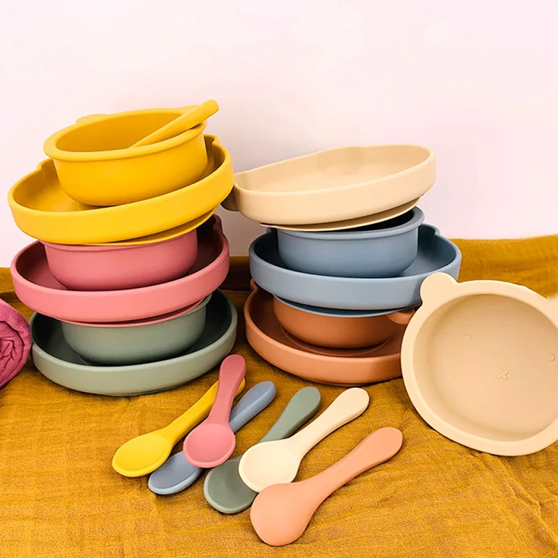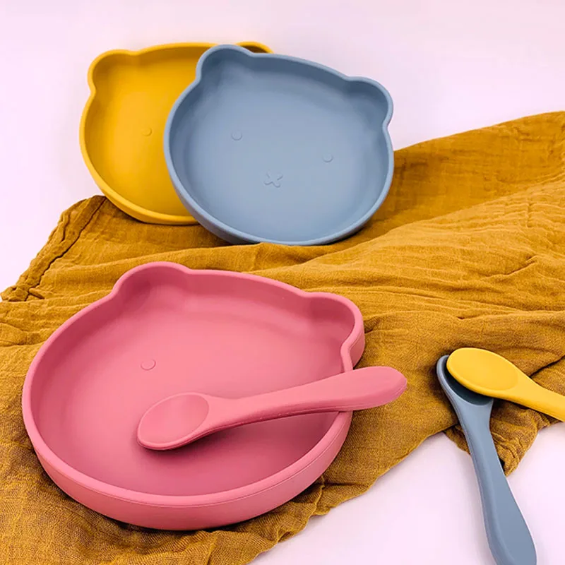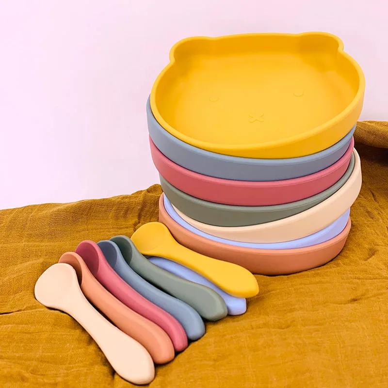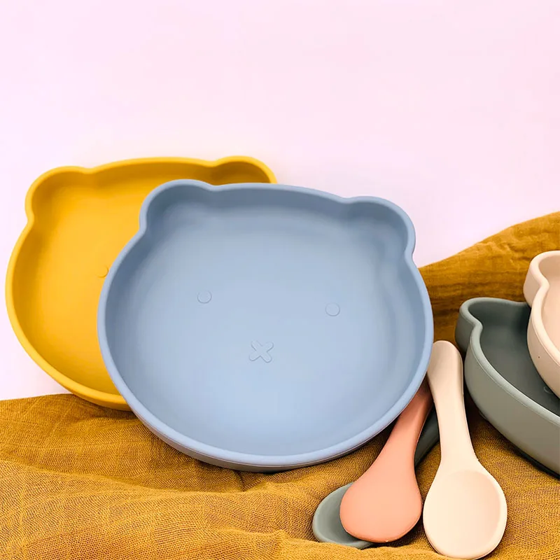 Посуда детская силиконовая на присоске, тарелка со смайликом, набор посуды в стиле ретро