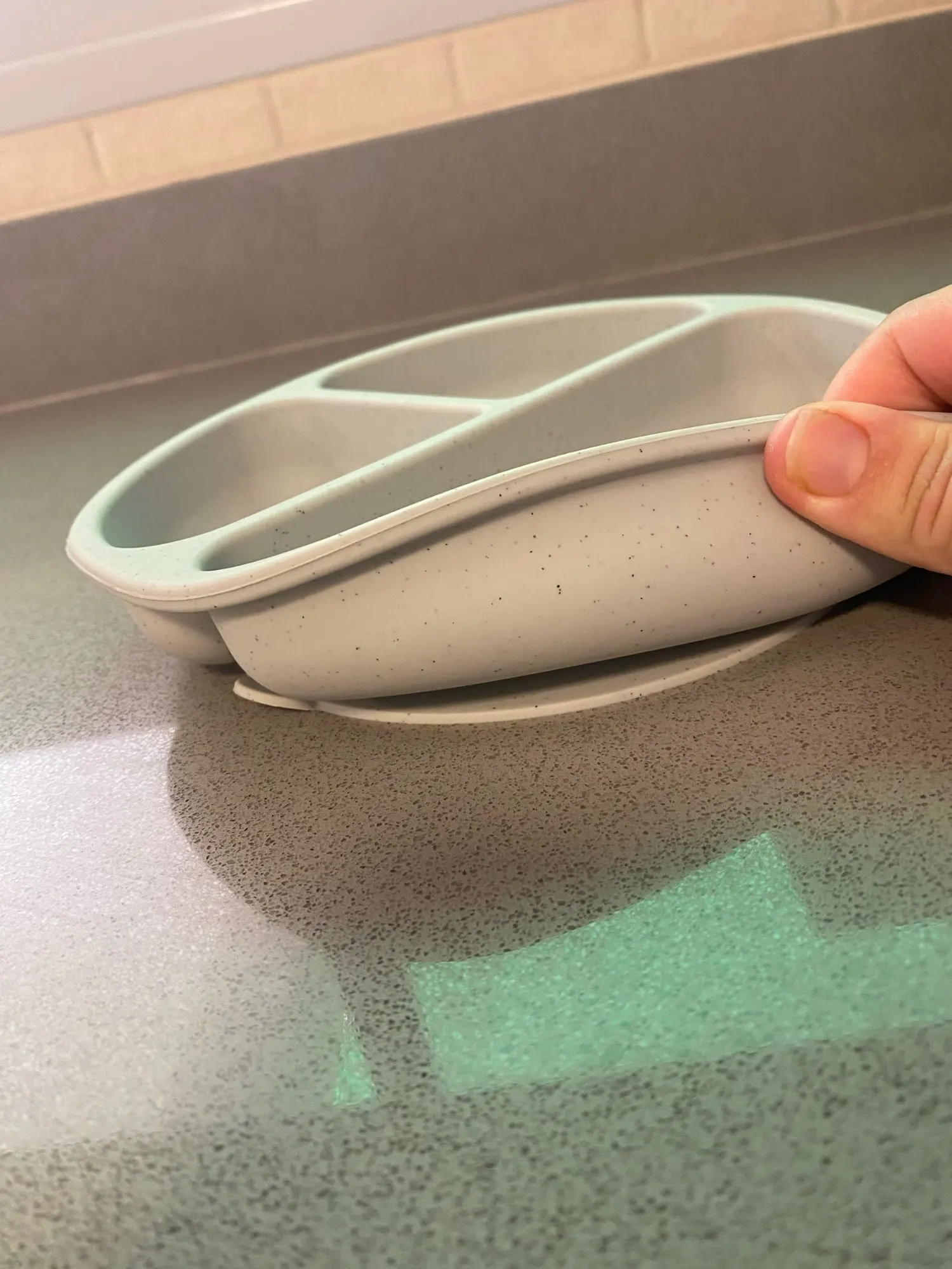 классная тарелка, тяжеленькая, толстый слой силикона. имеется присоска