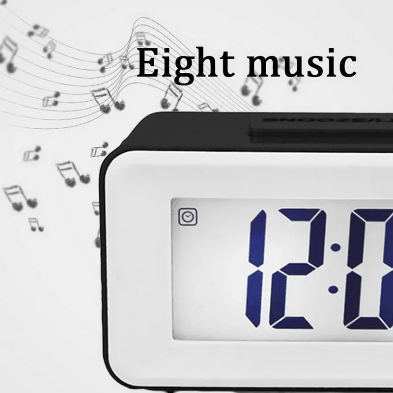 Особенности:<Сигналы тревоги с 8 мелодиями звонка: установка очень простая, идеально подходит для детей и пожилых людей. С 8 мелодиями звонка, легко настроить в соответствии с вашими потребностями.<Кнопка управления звуком и повтора: управление звуком: любой звук или нажатие разбудят будильник. Повтор: Нажмите кнопку повтора, чтобы насладиться дополнительным сном при звонке будильника.<Многофункциональность: отображение недели, даты, времени, температуры. Он также имеет функцию таймера.> Тихий: часы не будут беспокоить ваш сон.<Использование: Идеально подходит для школы, гостиной, спальни, кухни, офиса и многого другого.