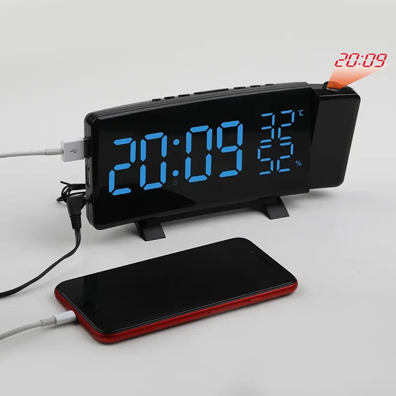 Цифровой светодиодный Будильник, электронные настольные часы, USB пробуждение, FM радио, таймер, проектор, функция повтора, отображение температуры и влажности