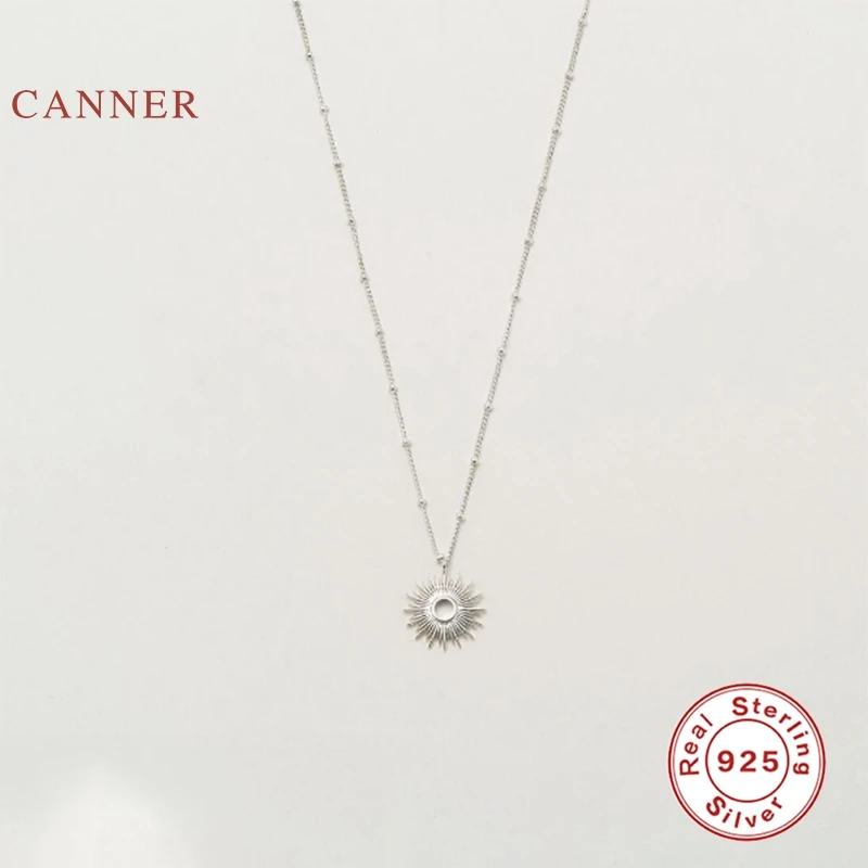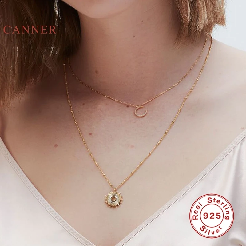 Женское Ожерелье CANNER Sun из настоящего серебра 925 пробы, Очаровательная цепочка с подвеской, воротник с ожерелье бижутерия 18 К