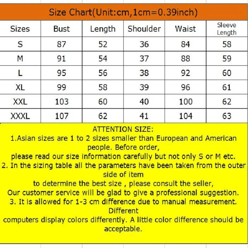 Внимание Размер: 1. Азиатские размеры на 1-2 размера меньше европейских и американских. Перед заказом, Пожалуйста, внимательно ознакомьтесь с информацией о размерах, но не только S или M и т. д. 2.IВ таблице размеров все параметры были взяты с внешней стороны изделия Чтобы определить наилучший размер,Пожалуйста, проконсультируйтесь с продавцом, Наша служба поддержки клиентов будет радаIПрофессиональное предложение. 3. Возможны отклонения в 1-3 см из-за измерений вручную.Разные Компьютеры отображают цвета по-разному. Допускается небольшая разница в цвете.